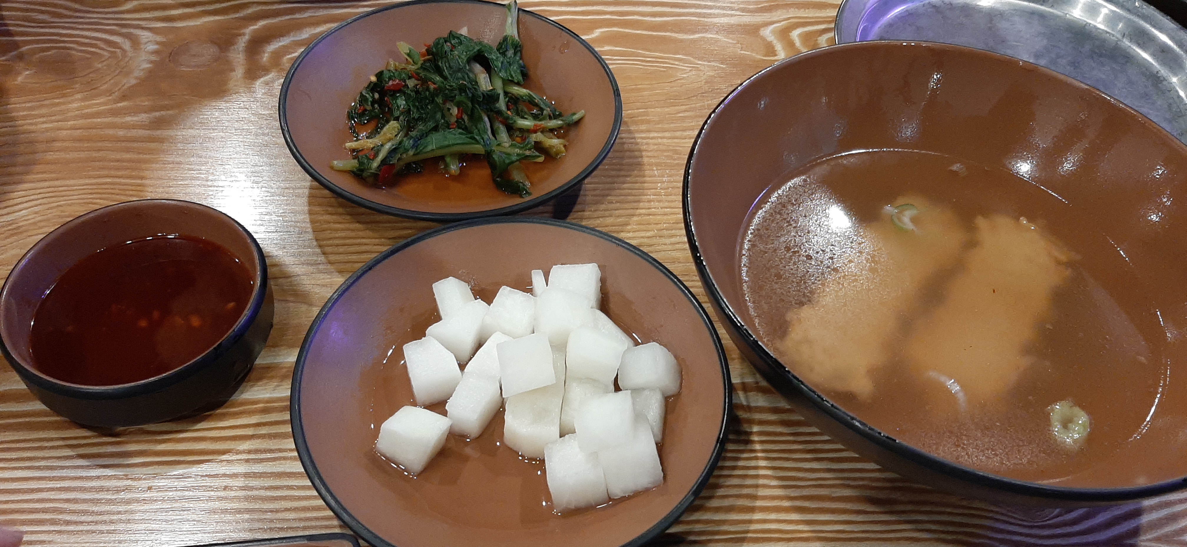 산행을 마치고 오후 2시쯤 신호등 장작구이 서오릉 본점을 방문했는데, 주차장이 매우 넓고, 넓은 가게 안에 손님들이 아주 많다. 기본 반찬으로 어묵국, 열무김치, 무절임이 나온다. 음식이 아주 빨리 나와서 좋다.