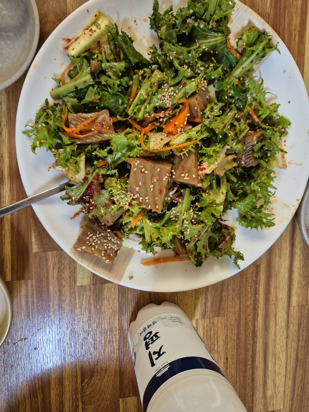 오늘은 도토리묵, 지평막걸리, 보리밥, 시래기밥을 주문한다.