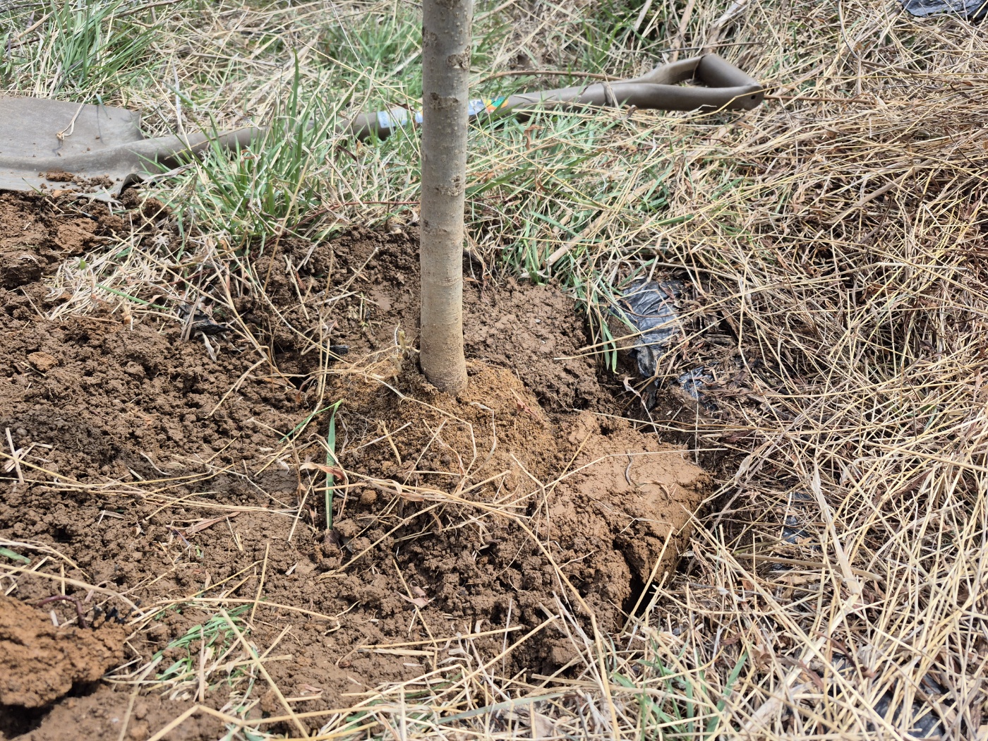 후배가 오기 전에 열심히 일을 한다. 먼저 호두나무를 심는다.