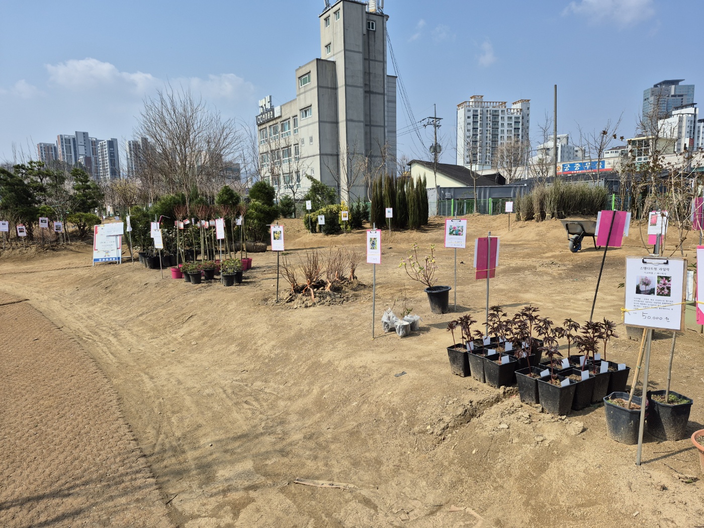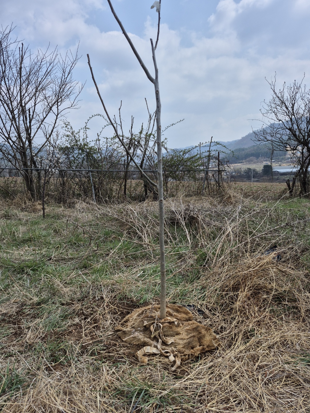 양평군 산림조합에서 매년 4월에 다양한 묘목을 전시 판매를 하여, 호두나무와 표고버섯 종균을 넣은 참나무를 구입하러 간다.