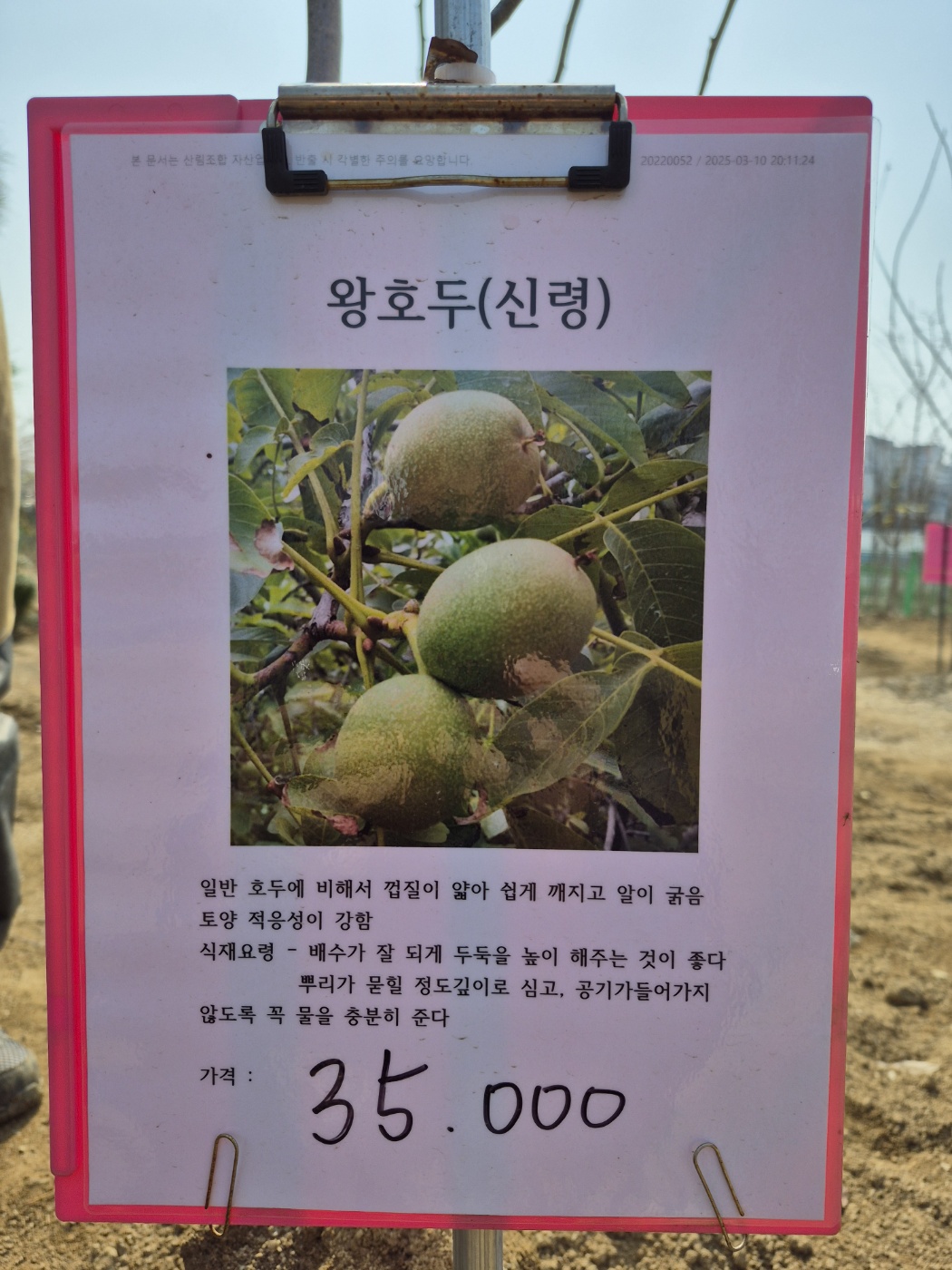 올해는 표고목이 안 들어와서 호두나무 1주를 35,000원에 구입하고, 청운농협 하나로마트로 간다.