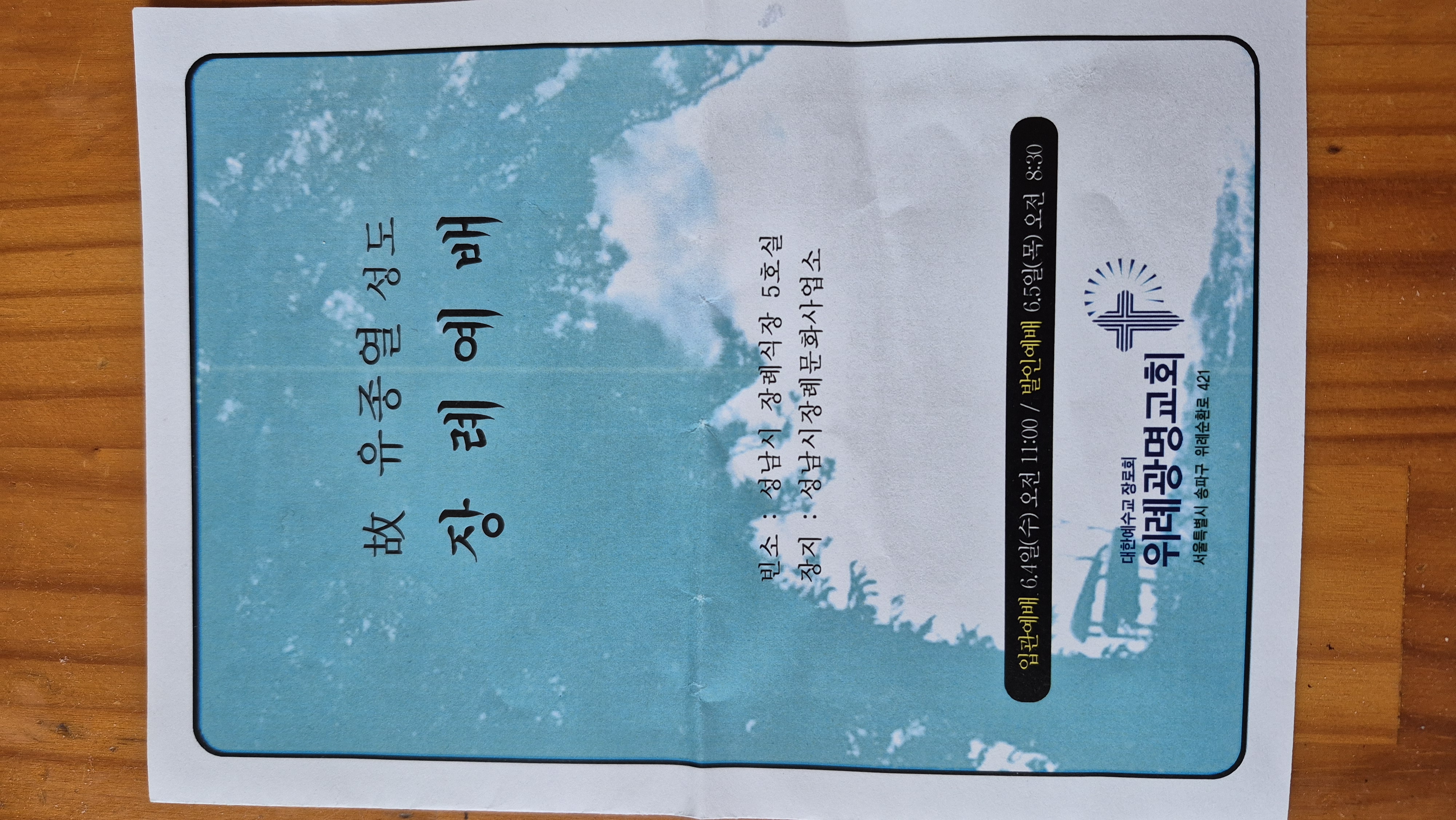2025년 6월 2일(월요일) 오후 4시 39분에 분당 제생병원에서 천국으로 가셨다.