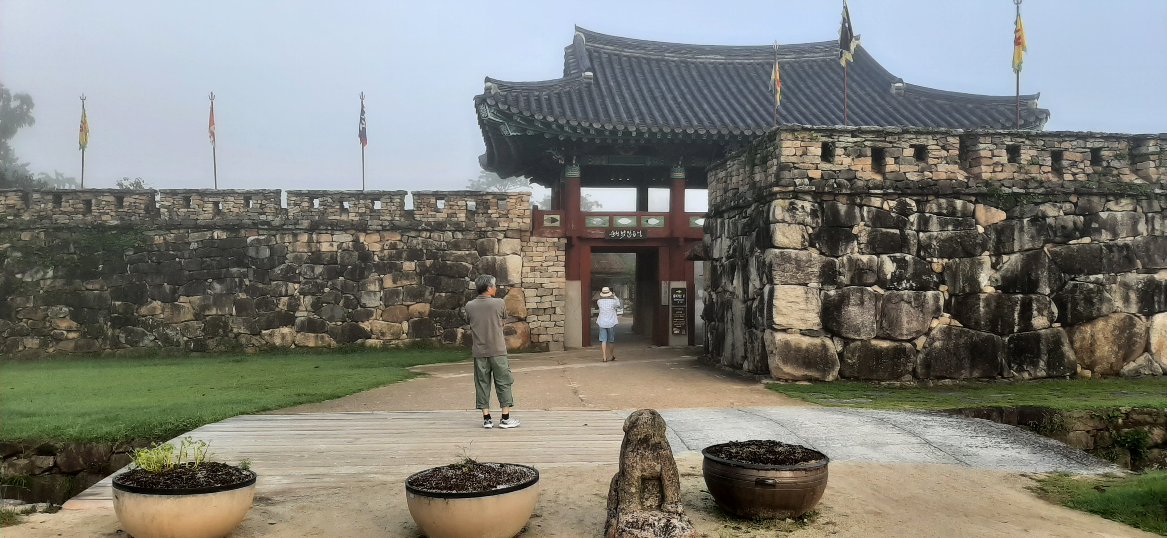 주차를 하고 성으로 들어가니 상쾌하고, 기분이 좋다. 성 안에 민박집 간판과 전화번호가 있어서, 다음에 방문하면 성 안에 있는 민박집에서 숙박을 하고 싶은 생각이 든다. 드라마와 영화 촬영도 많이 한다. 오늘도 KBS에서 방영하는 드라마를 촬영하느라 많은 스텝들이 분주하게 움직인다. 대장금을 촬영한 홍보 플래카드도 걸려있다. 우리가 드라마나 영화를 볼 때 등장인물이 단순하지만, 촬영할 때에는 무지하게 많은 스텝들과 관계자들로 촬영장이 엄청 소란하고 붐빈다. 주인공을 비롯해서 많은 출연자들을 챙겨주는 매니저들과 기사, 분장, 의상 등 보이지 않는 곳에서 일하는 사람들이 있다. 우리가 사는 인생도 내가 하루를 살기 위하여 많은 사람들의 도움으로 살아가지만, 우리는 그것을 별생각 없이 지나간다. 내가 돈을  지불하고 사는 것들이 다 그런 것들이다. 내가 직접 만들지 않아도 내가 사용하는 것들을 누군가는 정성스럽게 만든다.