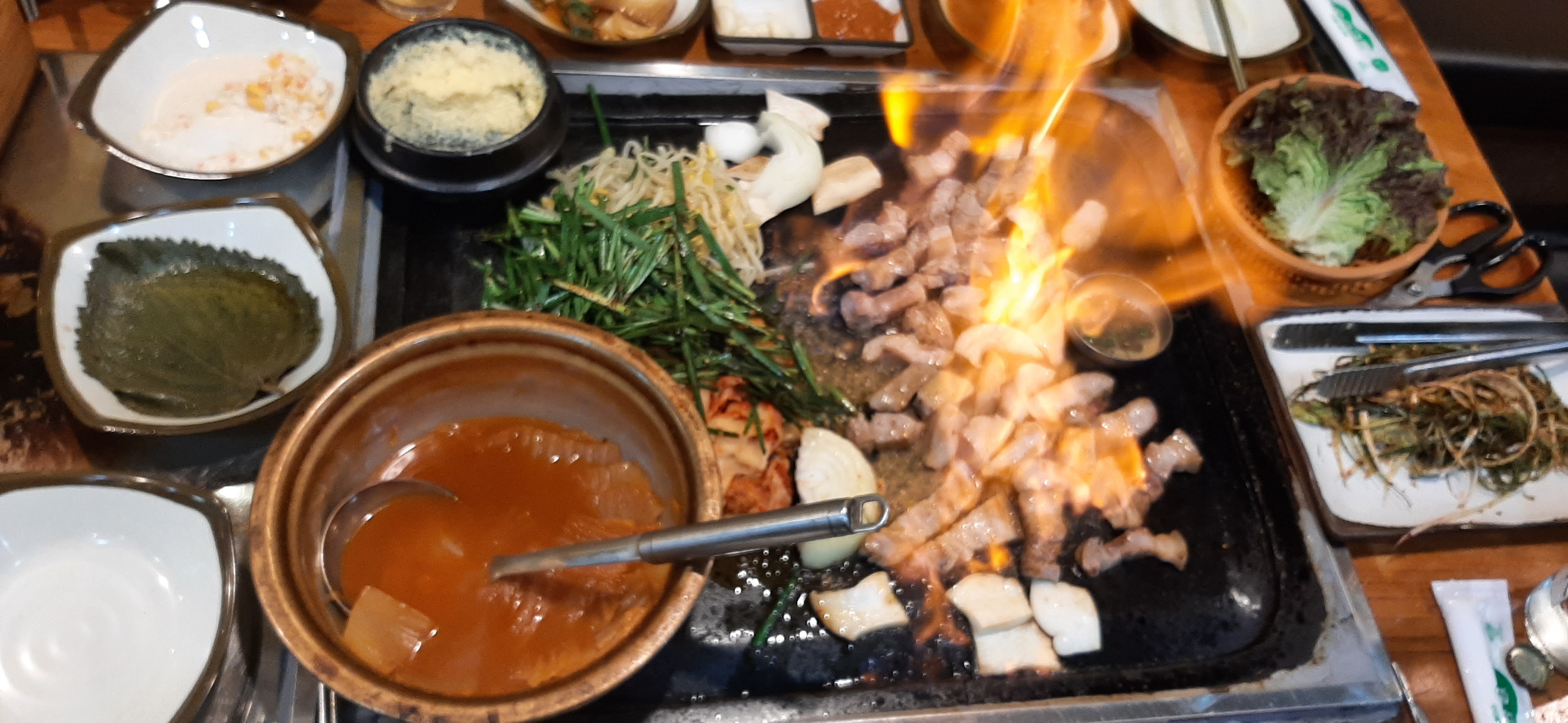 2024년 11월 21일(목요일) 며칠 전에 만나서 도심공항타워 푸드스트리트에 있는 차호방 by 리북방에서 순대국밥을 먹은 후배들과 송파구 삼전동에 있는 윗세오름이라는 식당에서 제주 흑돼지 스페셜 한판을 먹었다.