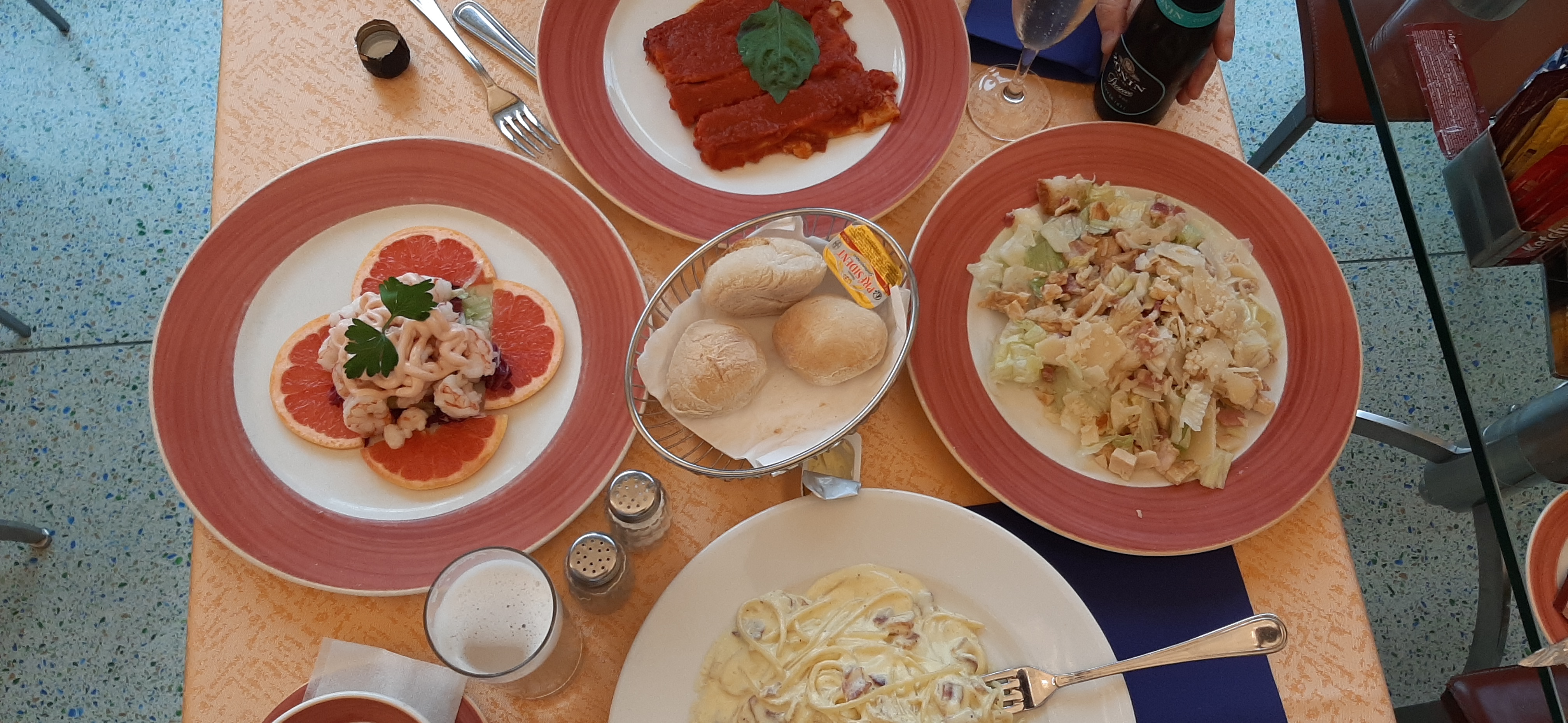 중국식 만두를 1개 먹어봤는데 내 취향은 아니다. 원영이가 파스타를 맛보더니, 원래 면이 좀 딱딱하다고 알려준다. 이태리는 알단테이다. 음식이 많이 남아서 팁을 준 웨이터에게 포장을 요구하니, 빵도 추가하여 포장을 해준다. 돈의 위력은 어디나 똑같다.
