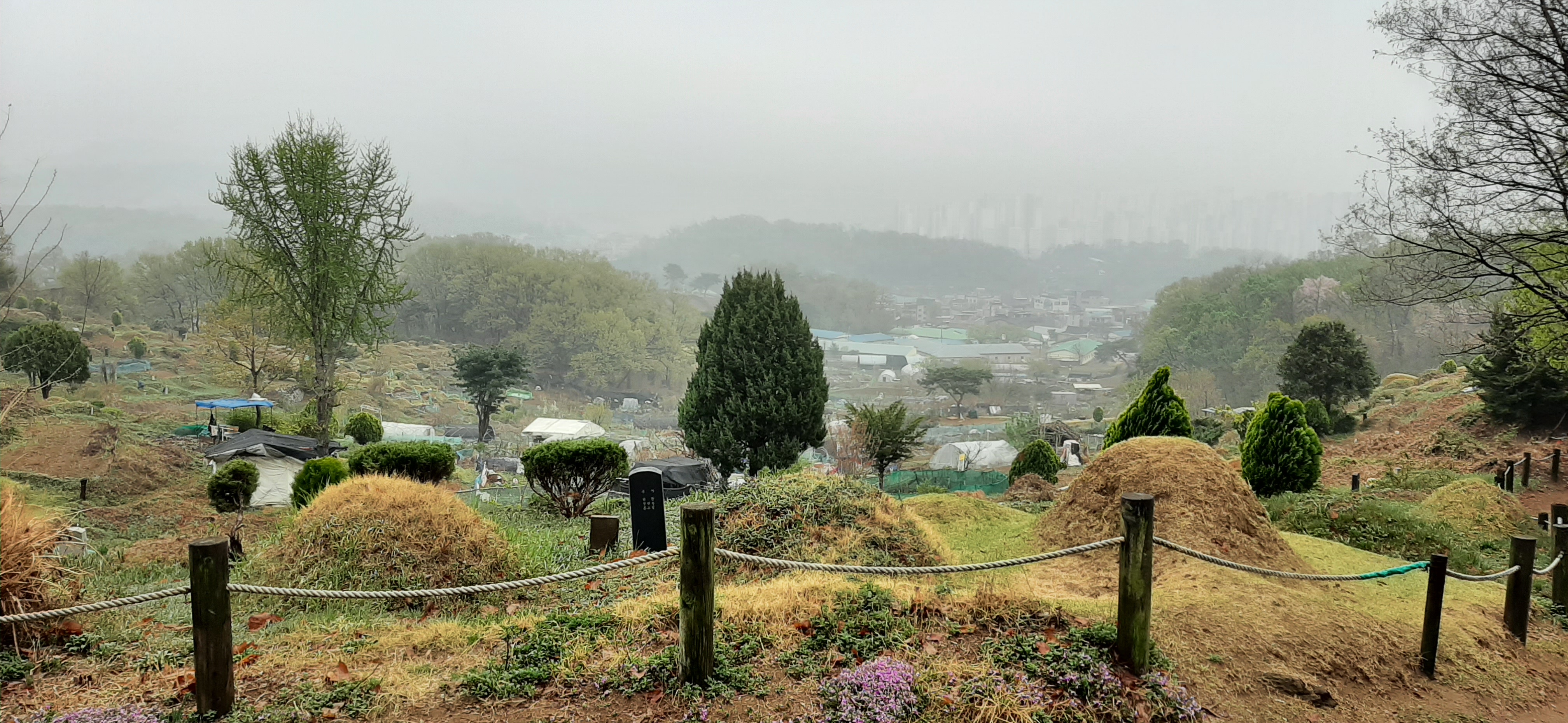 일자산은 산책하기 너무 좋은 산이다. 높이도 적당하고, 운동시설도 여러 군데 있고, 캠핑을 할 수 있는 강동 그린웨이 가족캠핑장이 있다. 일자산은 일자로 쭉 뻗어서 일자산이라고 한다. 일자산 정상에 오르니 감북동 공원묘지가 있고, 많은 무덤들 아래에 작은 마을이 형성되어 있다.
