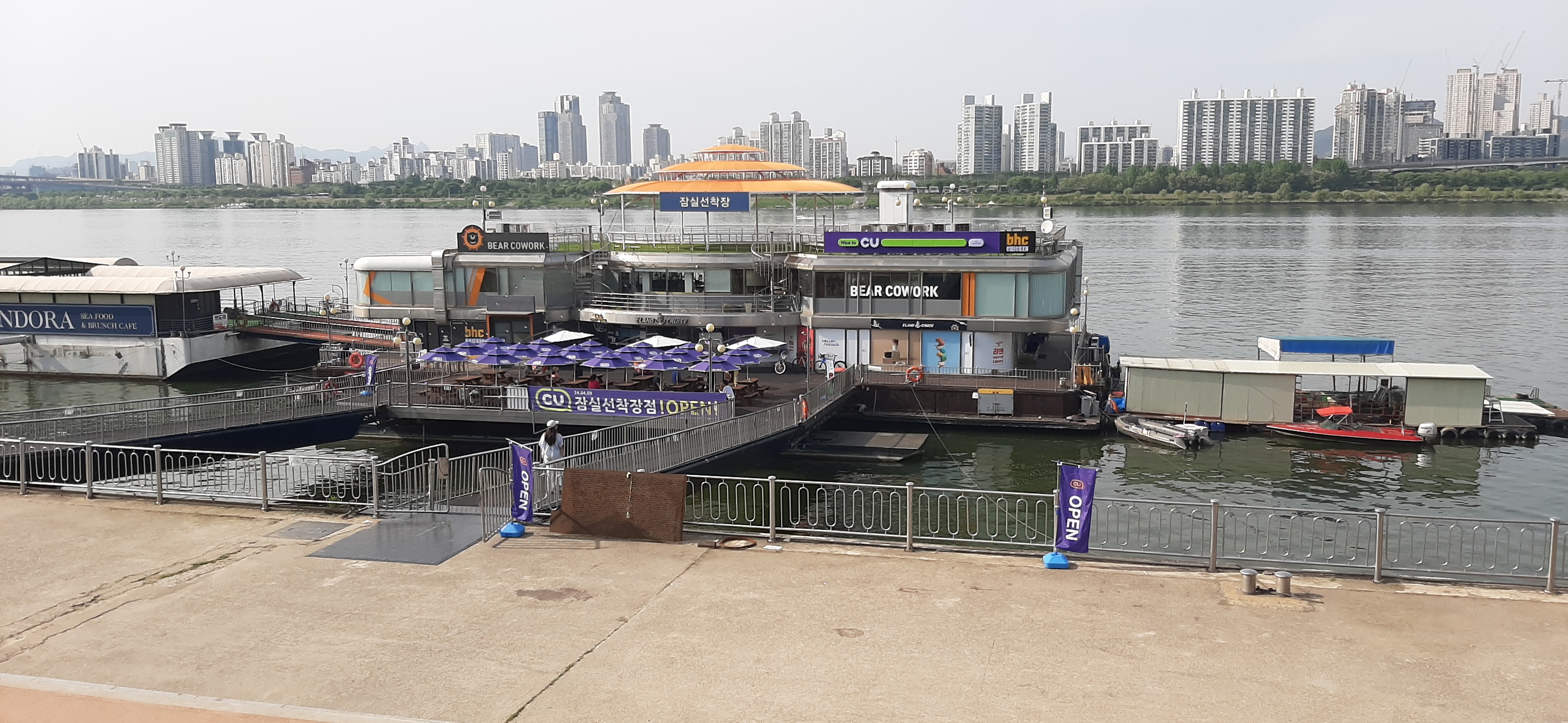 아직은 좀 이른 듯하나, 한강에는 수상스키를 타는 사람도 있다. 한강 잠실 선착장에 도착하여, CU편의점에서 맥주를 1캔 사서, 편의점에 마련된 의자에 앉아서, 창 밖으로 보이는 한강을 보면서, 바삭한 튀김 건빵을 안주로 시원한 맥주를 마신다.