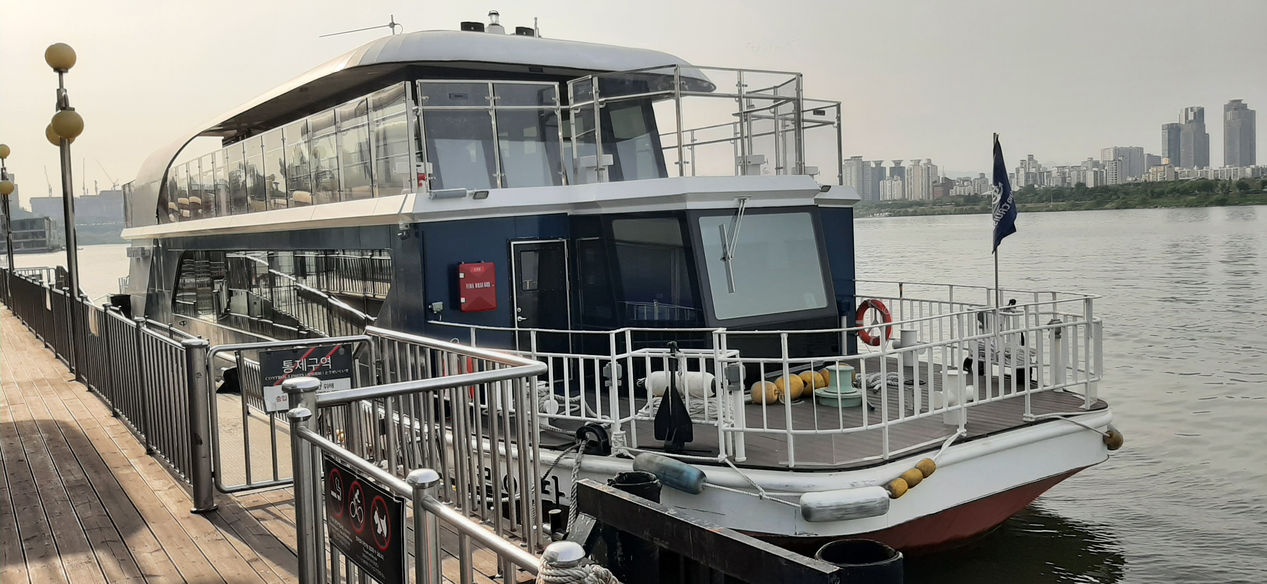 한강 잠실 선착장에는 이랜드 그룹에서 운영하는 크루즈 선박이 한강을 운행한다. 크루즈 선박이 선착장에 도착하니, 많은 관광객들이 행복한 표정으로 내린다. 나도 약 20여 년 전에 아이들과 마님을 모시고, 야간에 크루즈선박을 타고 한강을 시찰했던 기억이 난다.