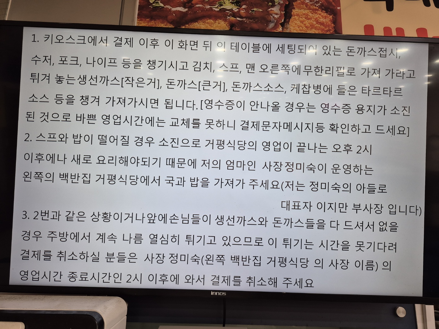 정미숙 돈가스 영업 시간 : 오전 11시부터 ~ 오후 2시까지