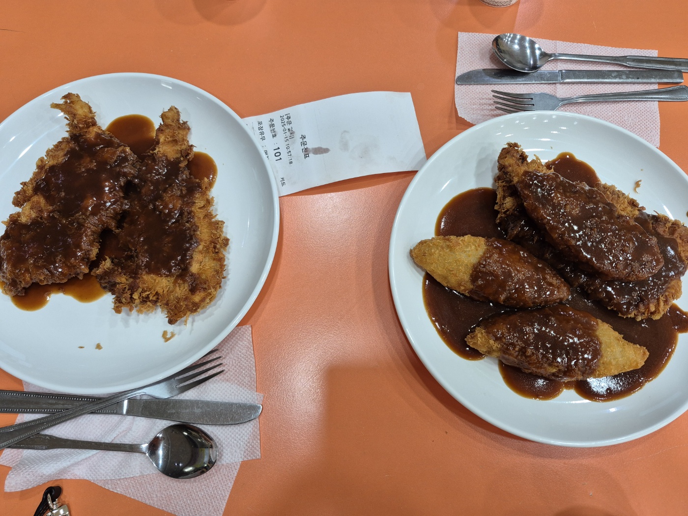 마님과 앉아서 돈가스를 먹으면서, 마님에게 맛이 어떠냐고 물어보니, 먹을만하다고대답하여, 내 기분이 좋다. 추운 겨울에 멀리 와서 먹는데 맛이 없으면 내 체면이 구겨진다.