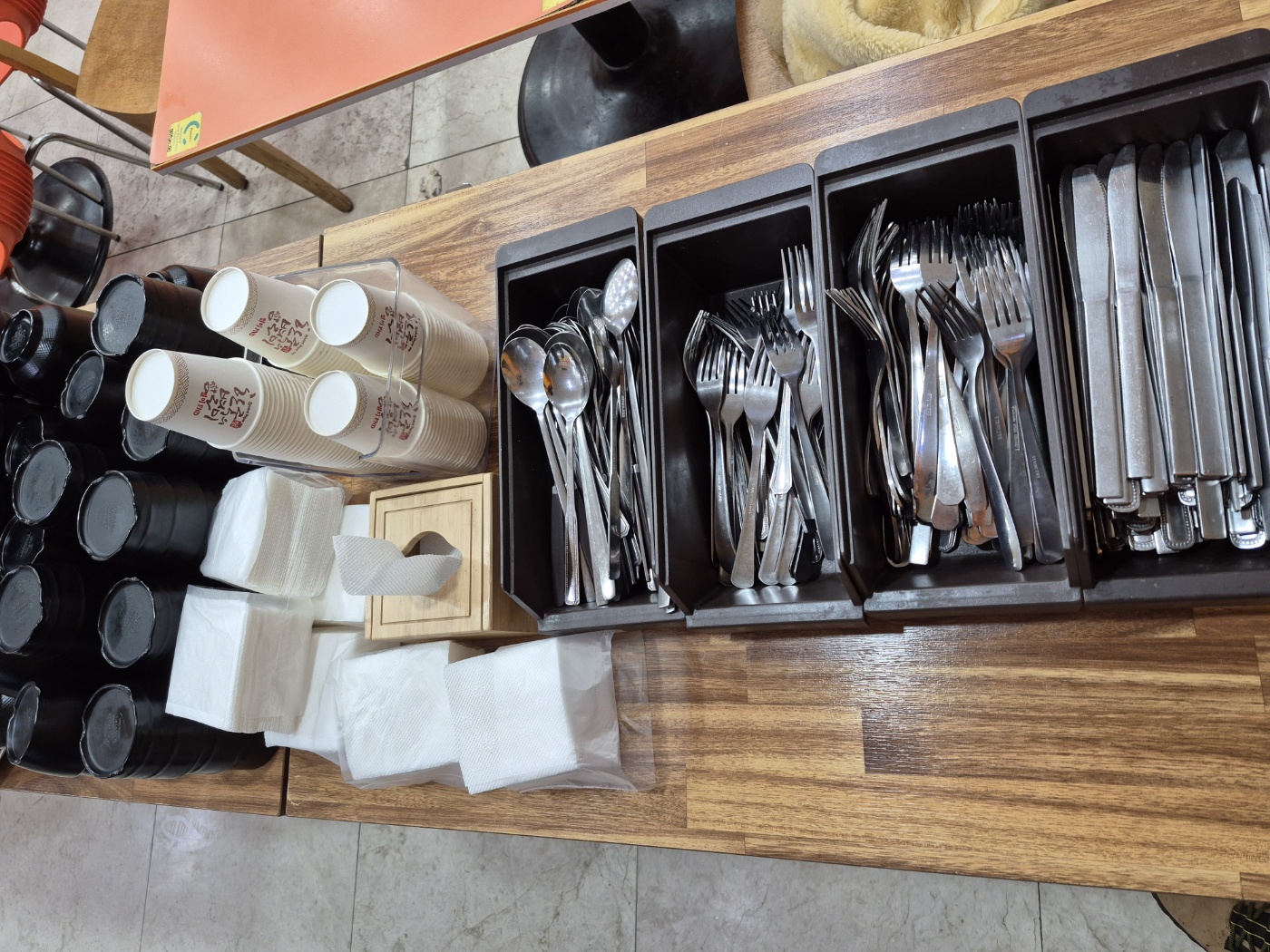 테이블에 자리를 잡고, 테이블 세팅을 한다.