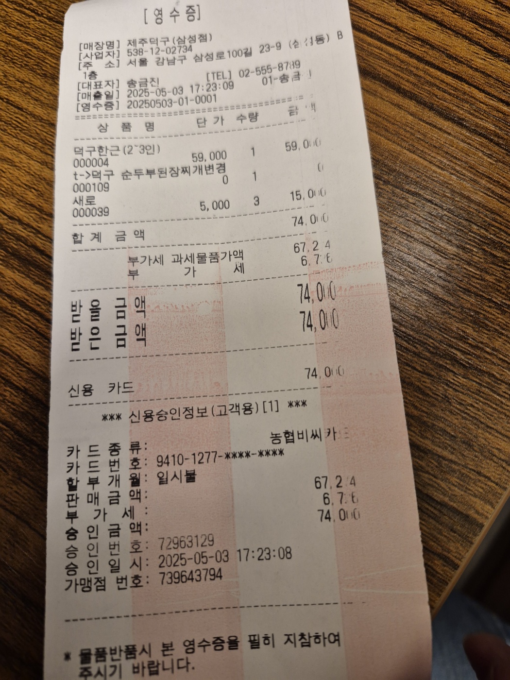 제주 덕구 강남구 삼성점을 방문하여 덕구 한근을 먹었다.