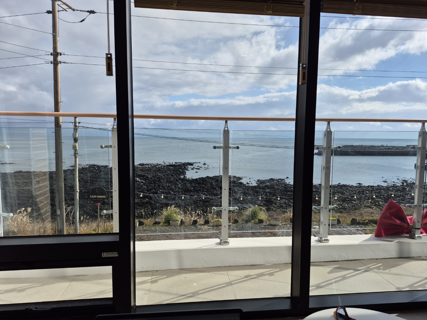 2024년 12월 28일(토요일) 아침부터 날이 흐리고 비가 오다 말다를 반복하며, 바람도 많이 불어서, 아침을 먹고 배낭에 노트북을 넣고, 집 근처에 있는 전망 좋은 카페 보리, 태평양 바다가 보이는 커다란 유리창 앞 의자에 앉아서 아메리카노를 마시면서 글을 쓴다.