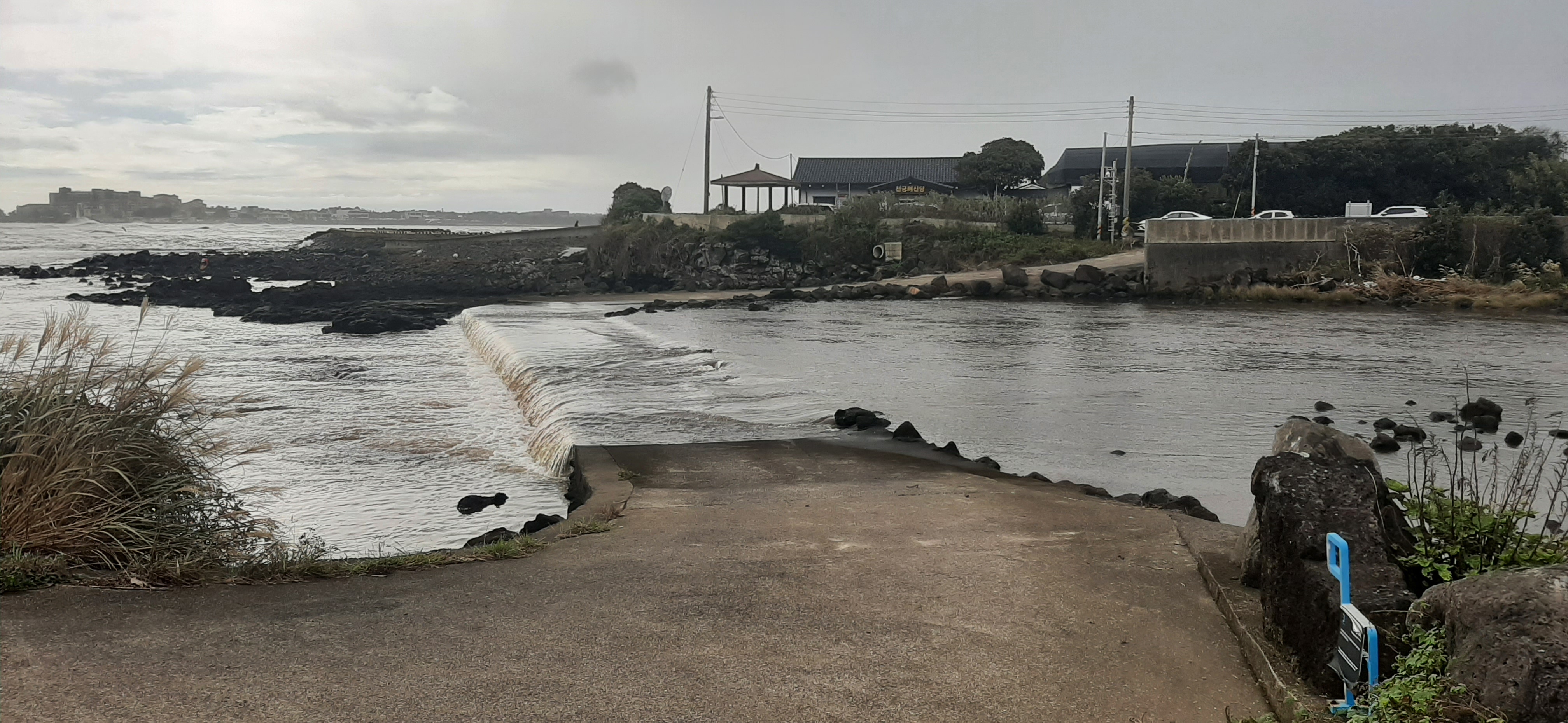 해안도로를 따라서 걷다 보니, 폭우로 약 10미터 정도의 개천이 범람해서, 약 1킬로미터를 돌아서 간다. 그래, 때로 인생은 돌아가는 것이 지름길이 되기도 한다.