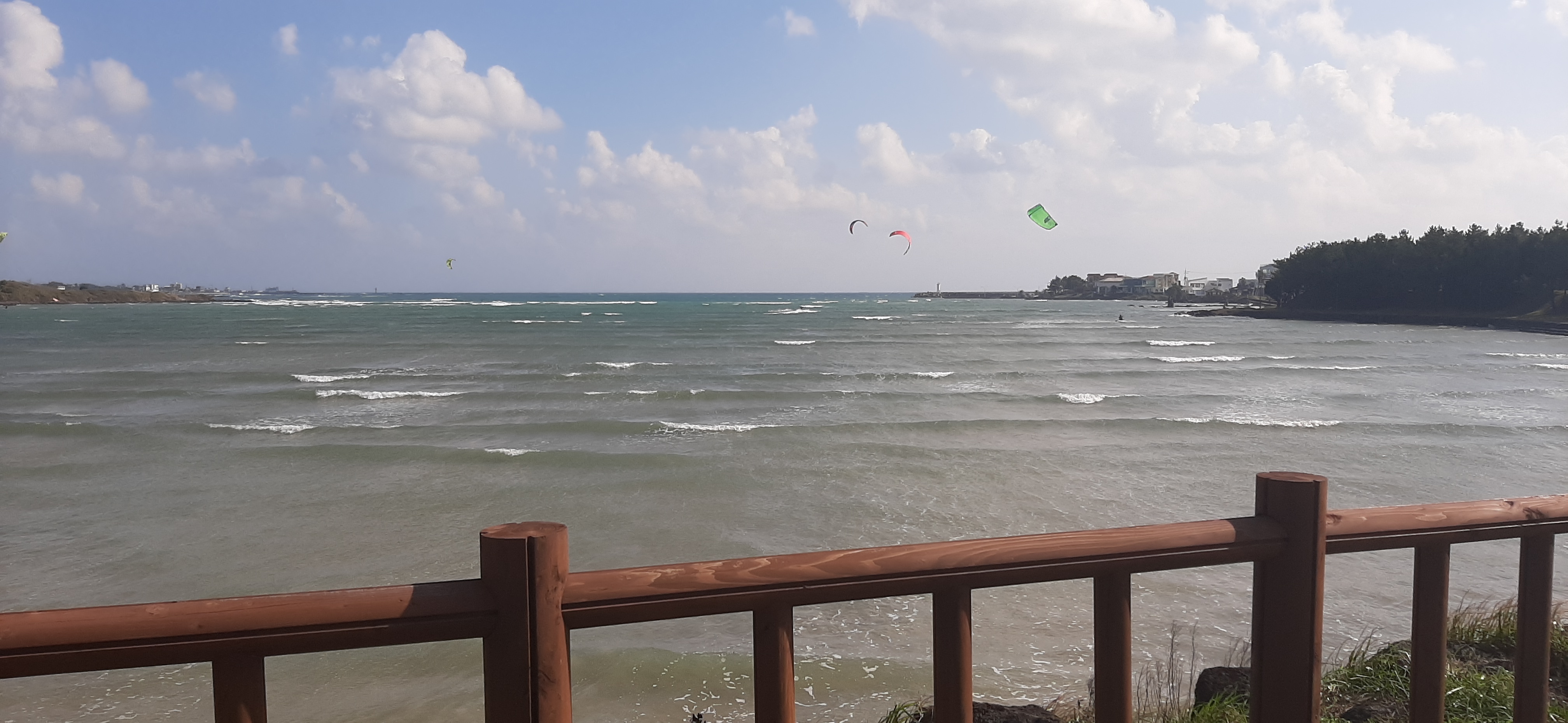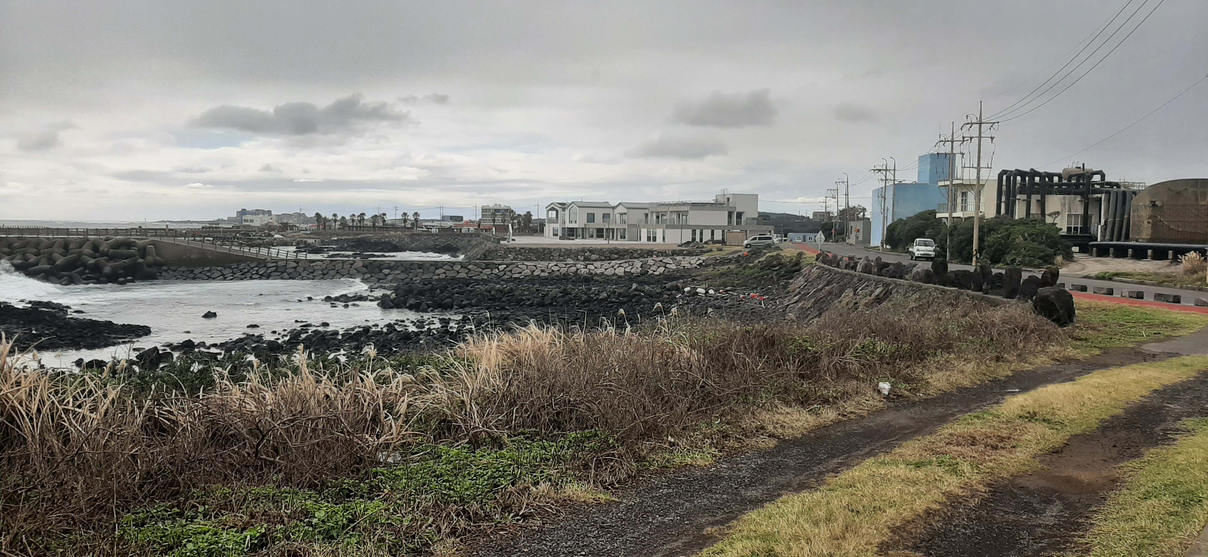 비는 그치고, 하늘에는 해가 나왔지만, 태풍 콩레이의 영향으로 파도는 세게 몰아친다. 거세게 몰아치는 파도를 보면서 천천히 해안도로를 걷는다.