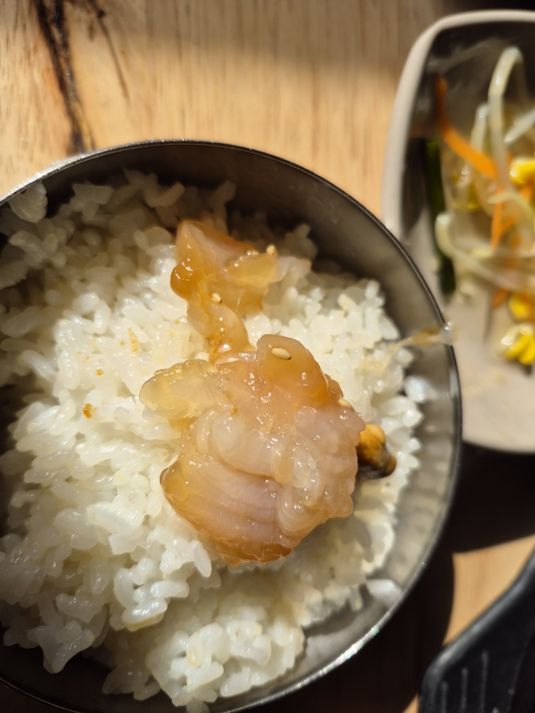 식당은 밥이 맛있어야 한다는 것이 내 생각인데, 돌집식당의 밥은 윤기가 흐르면서 밥맛도 좋다. 생선을 좋아하는 나는 옥돔구이를 먼저 먹고, 간장게장을 좋아하는 마님은 간장게장을 먼저 드신다. 편운산방에서 먹은 옥돔구이보다 조금 큰 옥돔구이를 준다.