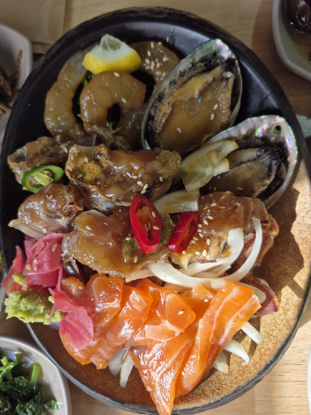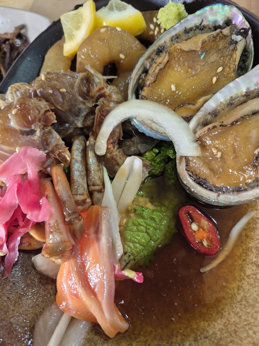 점심시간이 좀 지나서 그런지 넓은 식당이 좀 한산하다. 우리는 간장게장, 전복장, 새우장, 연어장 그리고 옥돔구이가 나오는 밥도둑정식 2인분을 주문했다.