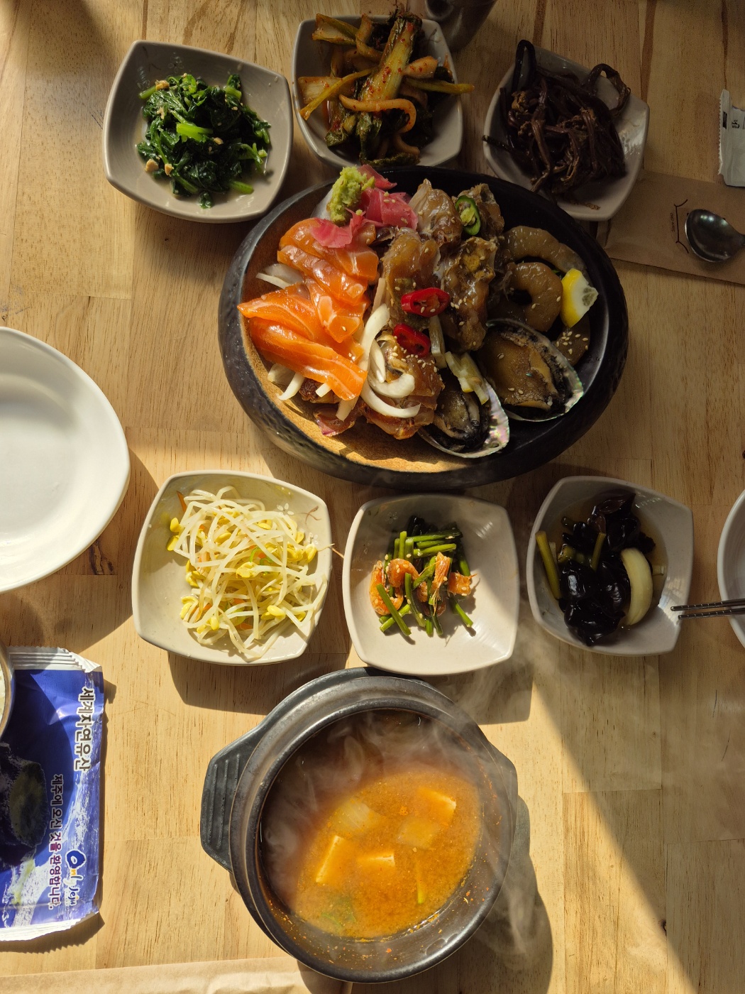 10여분을 기다리니, 일하시는 분이 우리가 주문한 밥도둑정식을 테이블에 놓아준다. 이번에는 먹기 전에 블로그에 올릴 사진을 찍었다.