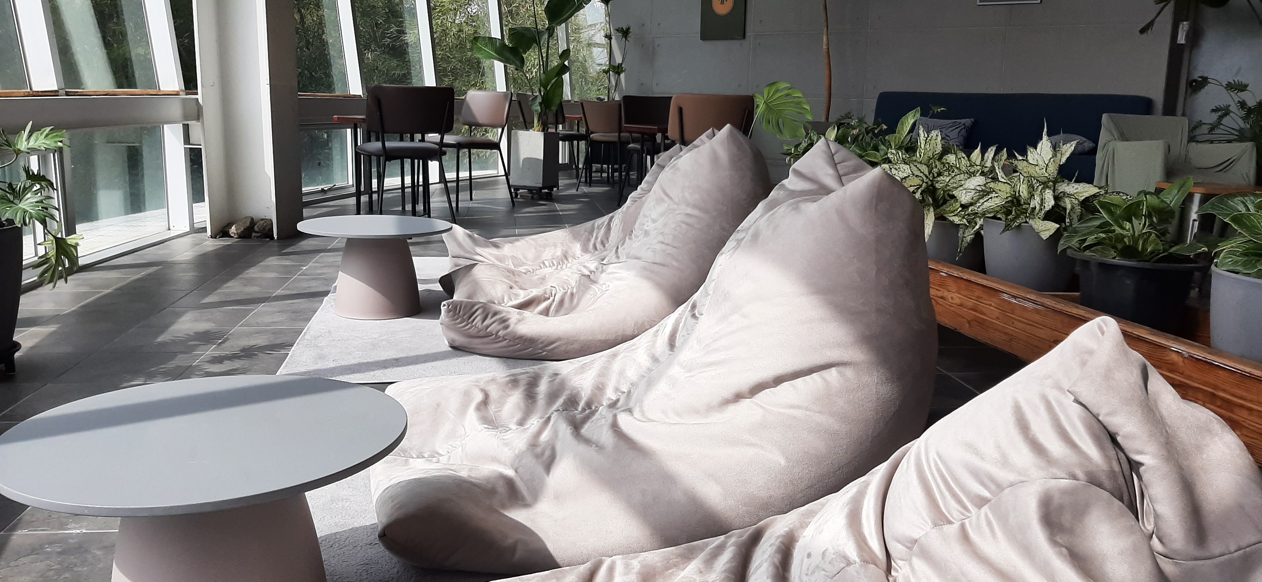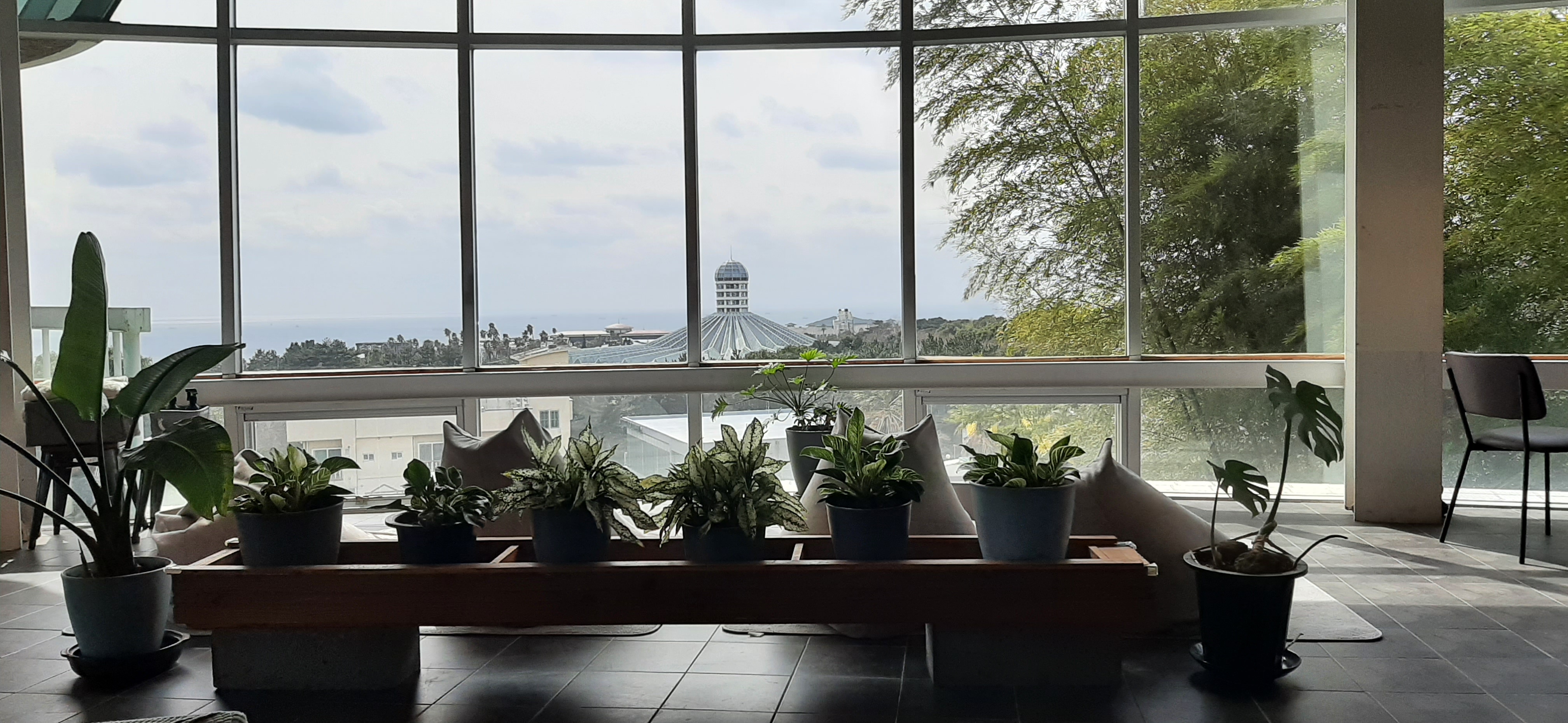 카페는 전망이 너무 좋아서 여미지 식물원이 아래로 보이고 서귀포 바다의 풍경도 잘 보인다. 젊은 연인들이 많이 찾아오는 카페이다. 또 아주 편하게 누워서 경치를 즐기면서, 연인들이 대화를 할 수도 있다.
