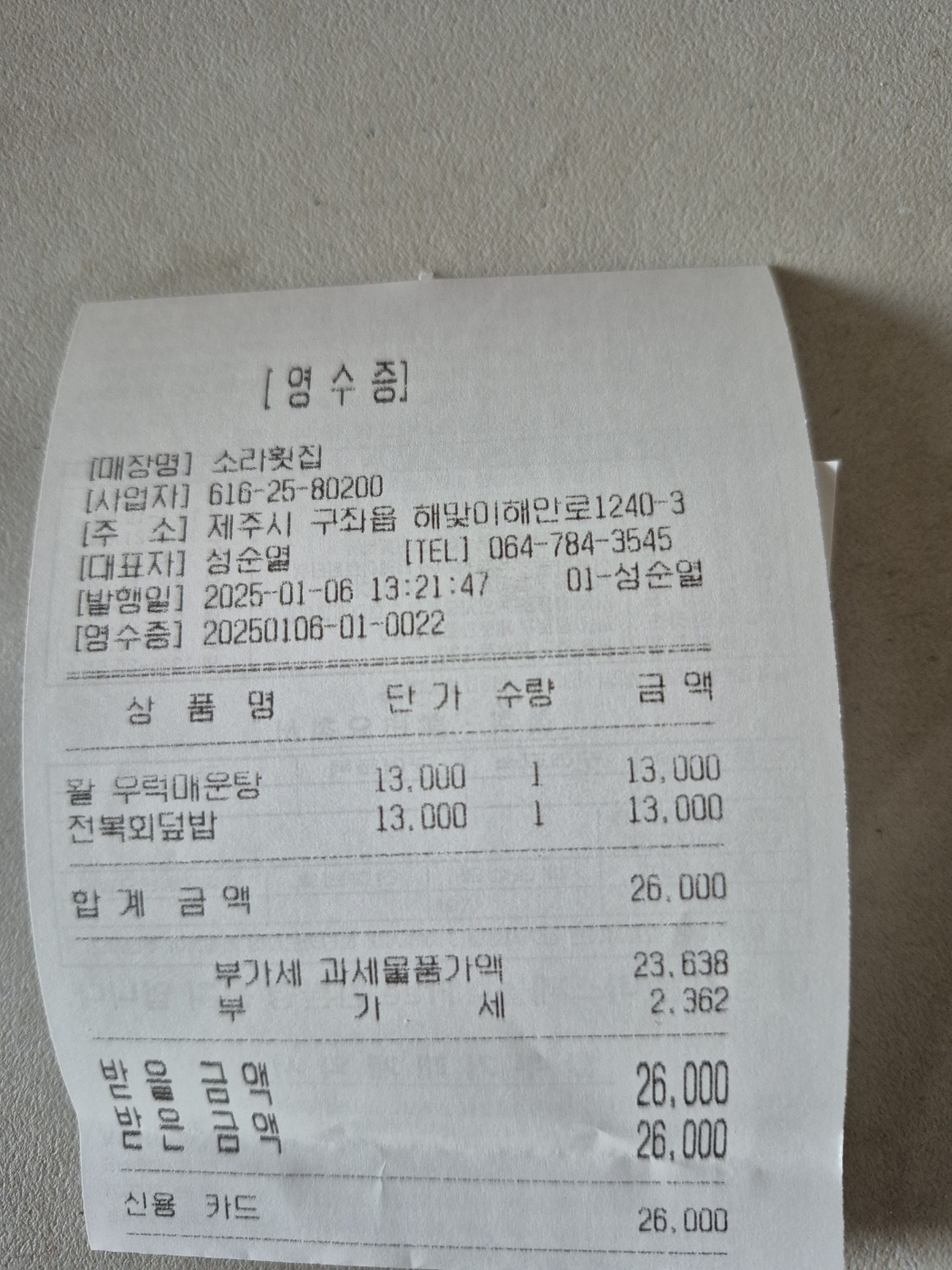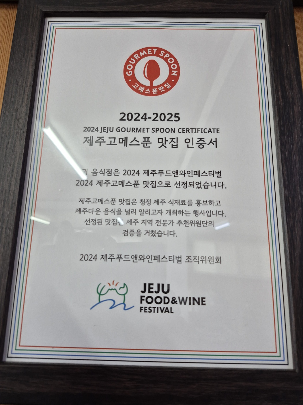 소라횟집은 제주고메스푼 맛집 인증서를 받은 맛집이다.