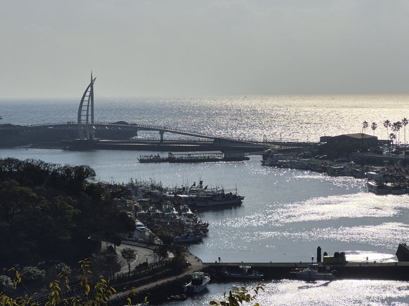 올레서울식당에서 점심을 맛나게 먹고, 우리가 항상 가는 서귀포항에 있는 새연교를 향해서 가다, 이번에는 카페준에서 커피를 마시면서 서귀포항과 새연교의 경치를 구경하기로 정한다.