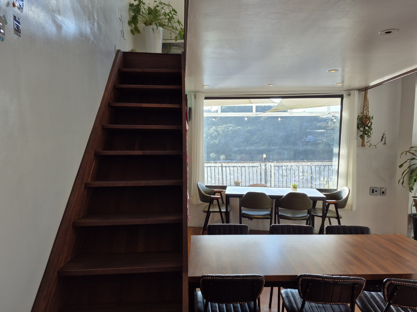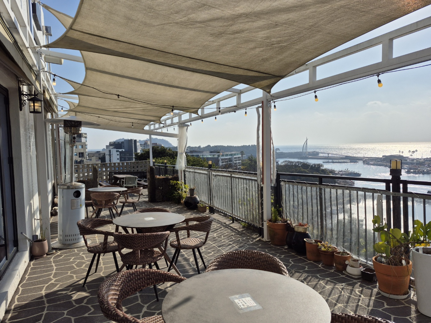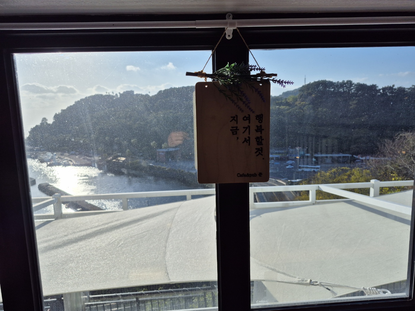 카페준은 경치가 좋아서 우리가 자주 가던 카페이다. 카페준에 마련된 야외 테이블에 앉아서 따듯한 햇빛을 쬐면서 친구와 아까 눈치 보면서 하던 핫한 주제로 대화를 한다.