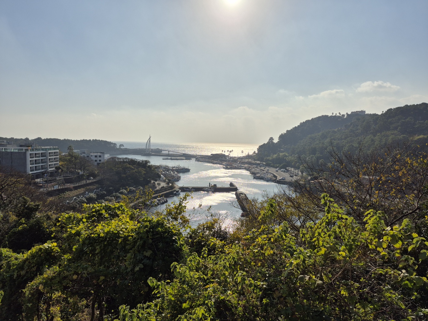 올레서울식당에서 점심을 맛나게 먹고, 우리가 항상 가는 서귀포항에 있는 새연교를 향해서 가다, 이번에는 카페준에서 커피를 마시면서 서귀포항과 새연교의 경치를 구경하기로 정한다.