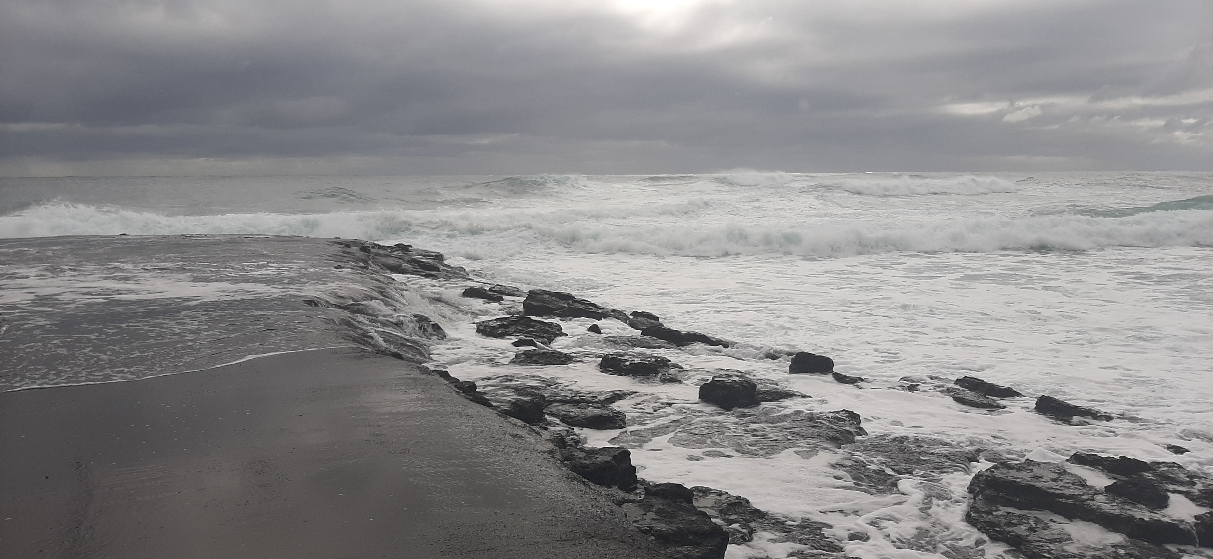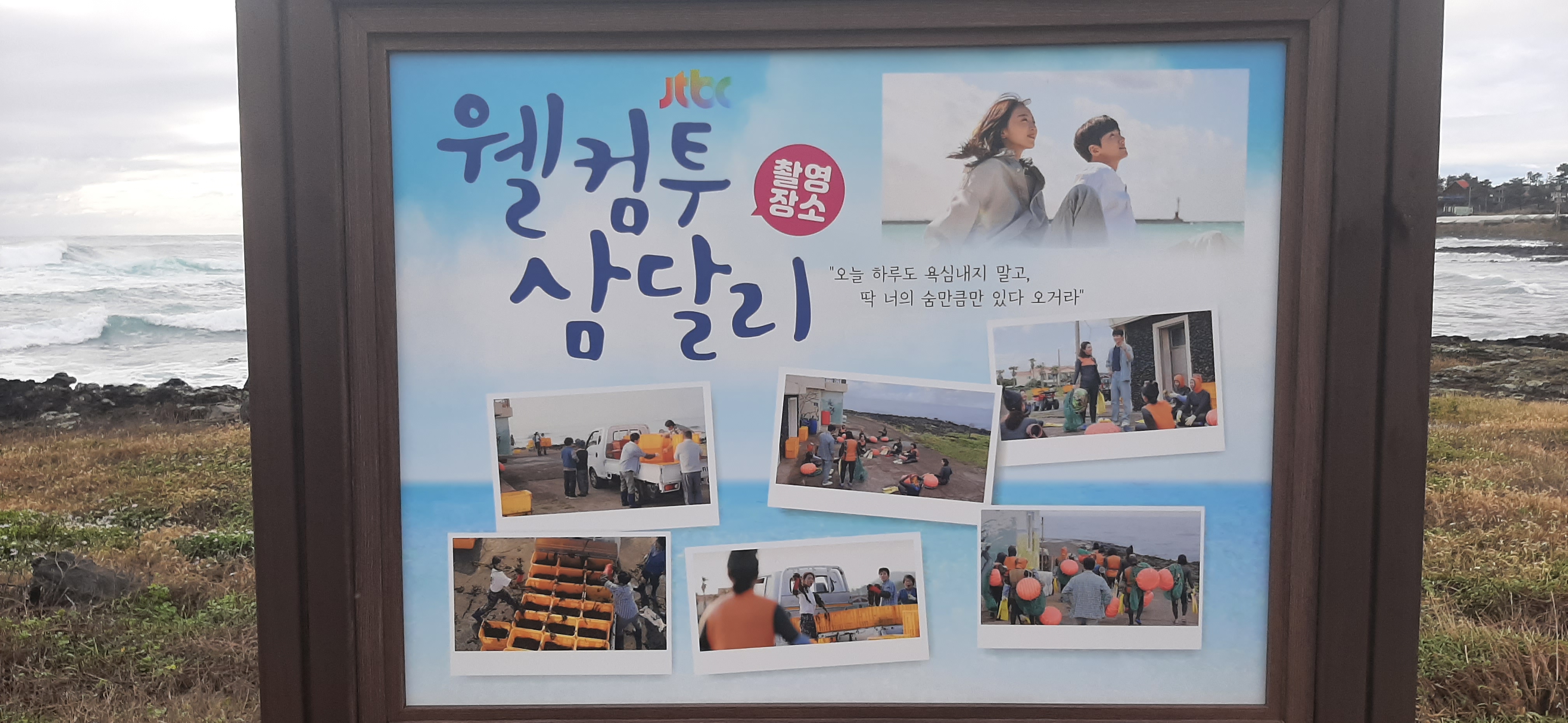 밤새 바람 불고 비가 내리고, 아침에 일어나서 창밖을 보니 아주 큰 파도가 해안으로 계속 밀려들어온다. 차를 타고 파도를 구경하러 가려다가 무서워서 집에서 파도를 구경한다. 비가 그치고, 바람도 약해져서, 파도를 구경하러 걸어서 웰컴투 삼달리 드라마를 촬영했던 삼달리 해녀작업장으로 간다.