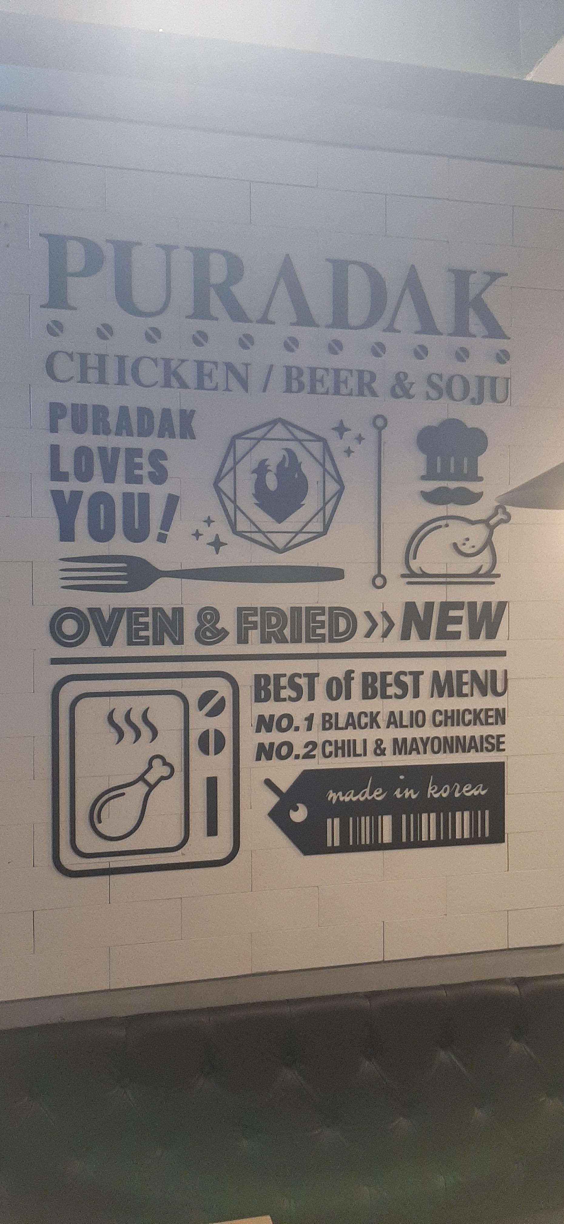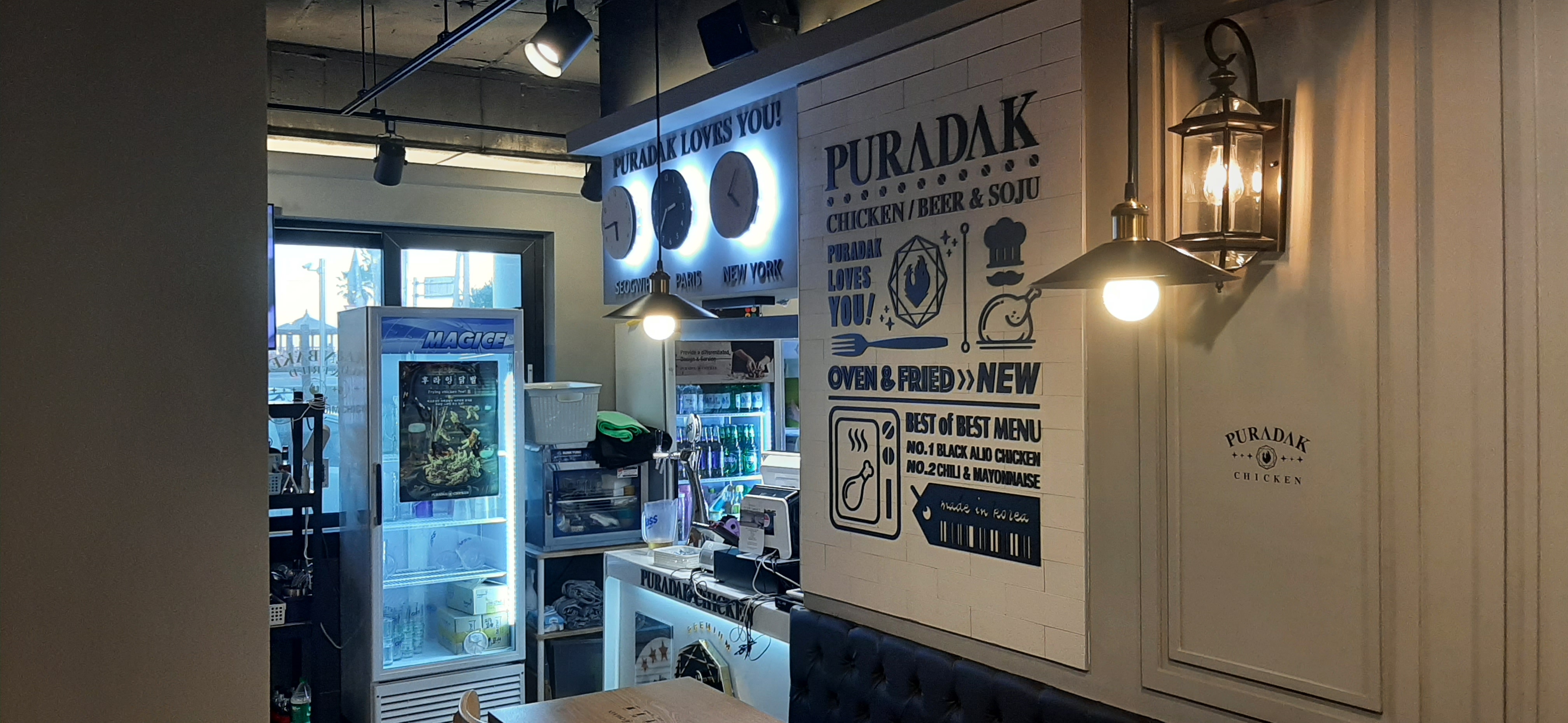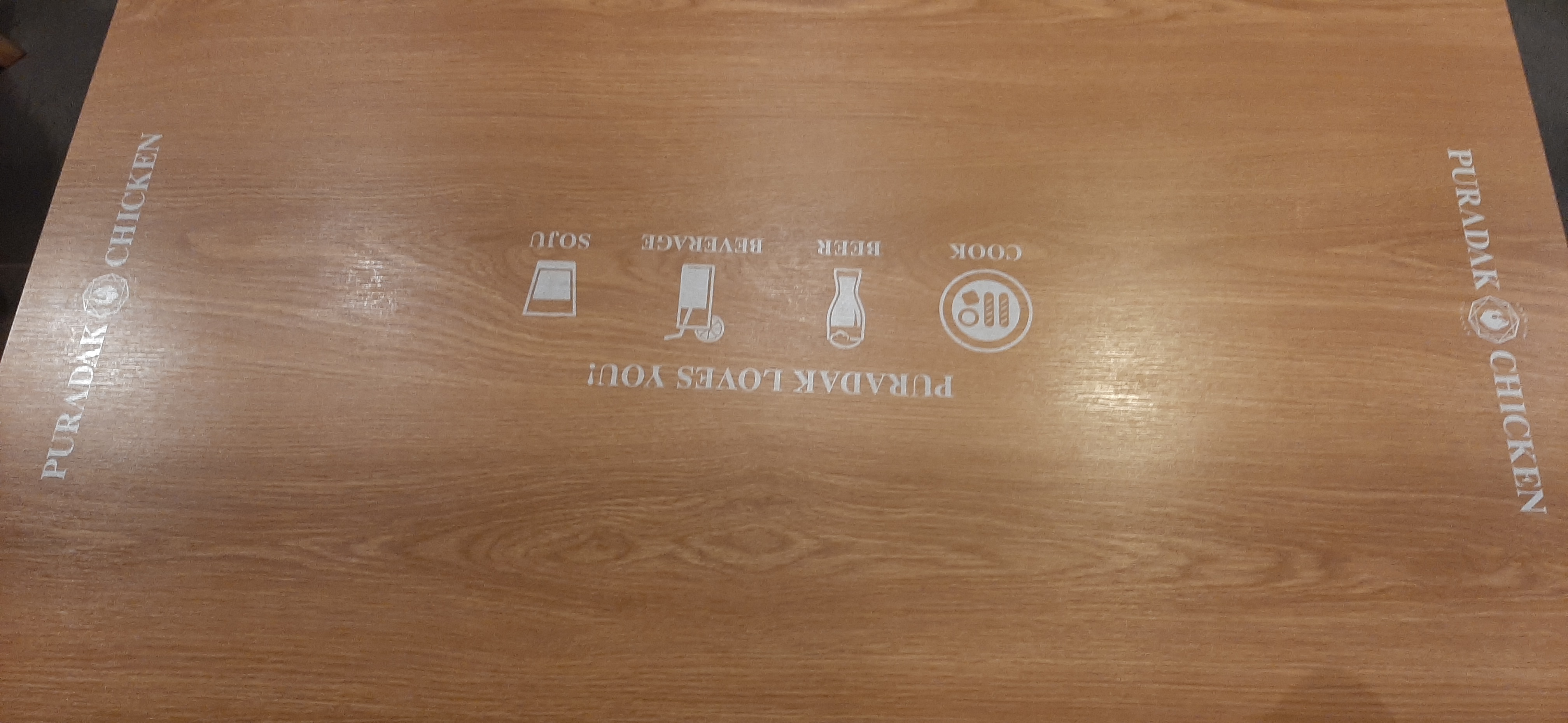 기분 좋게 들어가니 크지는 않아도 깔끔하게 인테리어가 되어있다. 테이블에도 푸라닭은 나를 사랑한다고 쓰여 있다.
