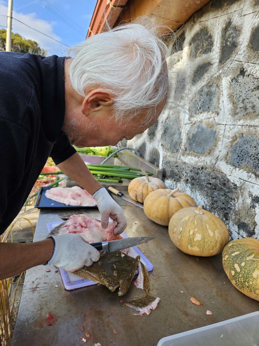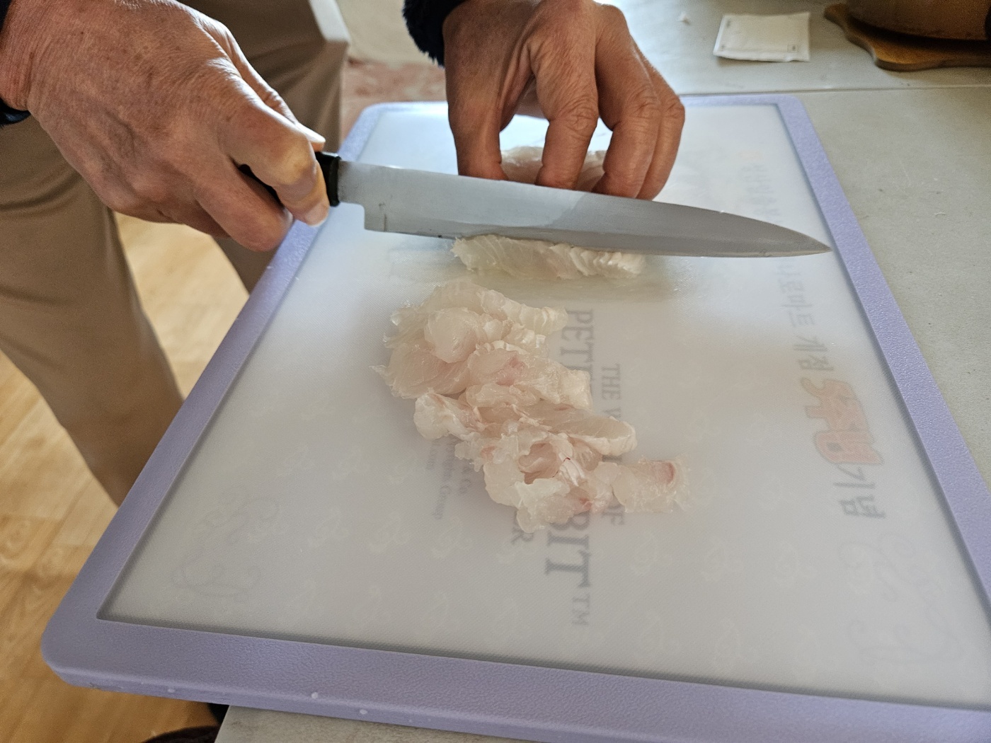 2025년 1월 4일(토요일) 근처 양식장에서 구입한 3킬로 대광어 회를 뜬다.