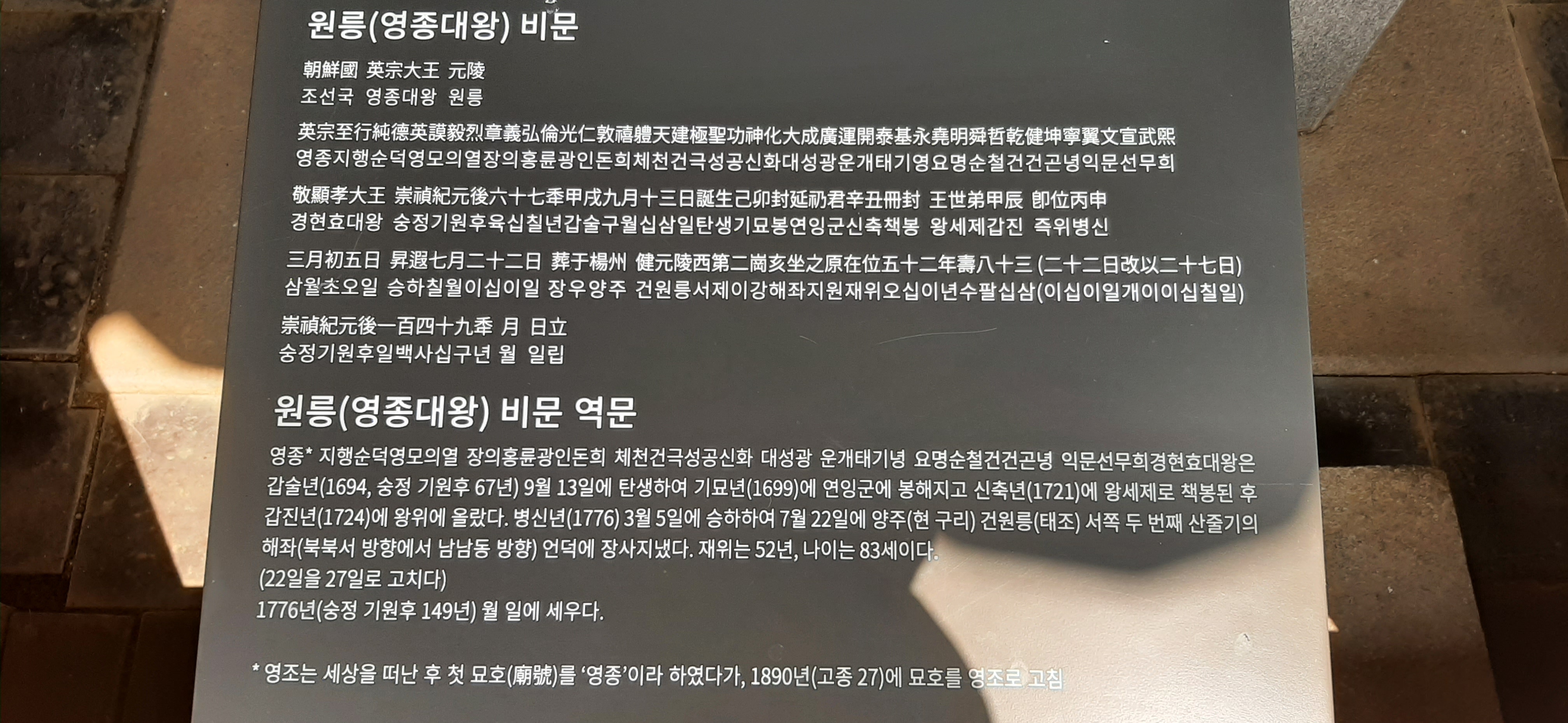 조선 역대 국왕 중 가장 오래 살았고(83세) 오래 재위(52년)하였다. 세상을 떠난 후 묘호를 영종이라 하였다가 1890년(고종 27) 영조로 바뀌었다.