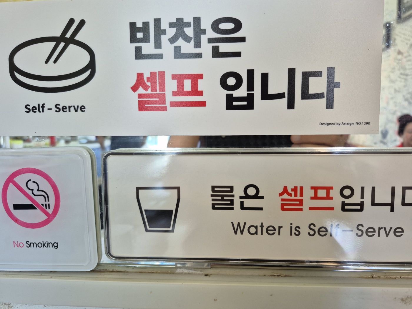 두 부부가 운영하는 식당이라 물과 반찬은 셀프로 가져와서 먹어야 한다.