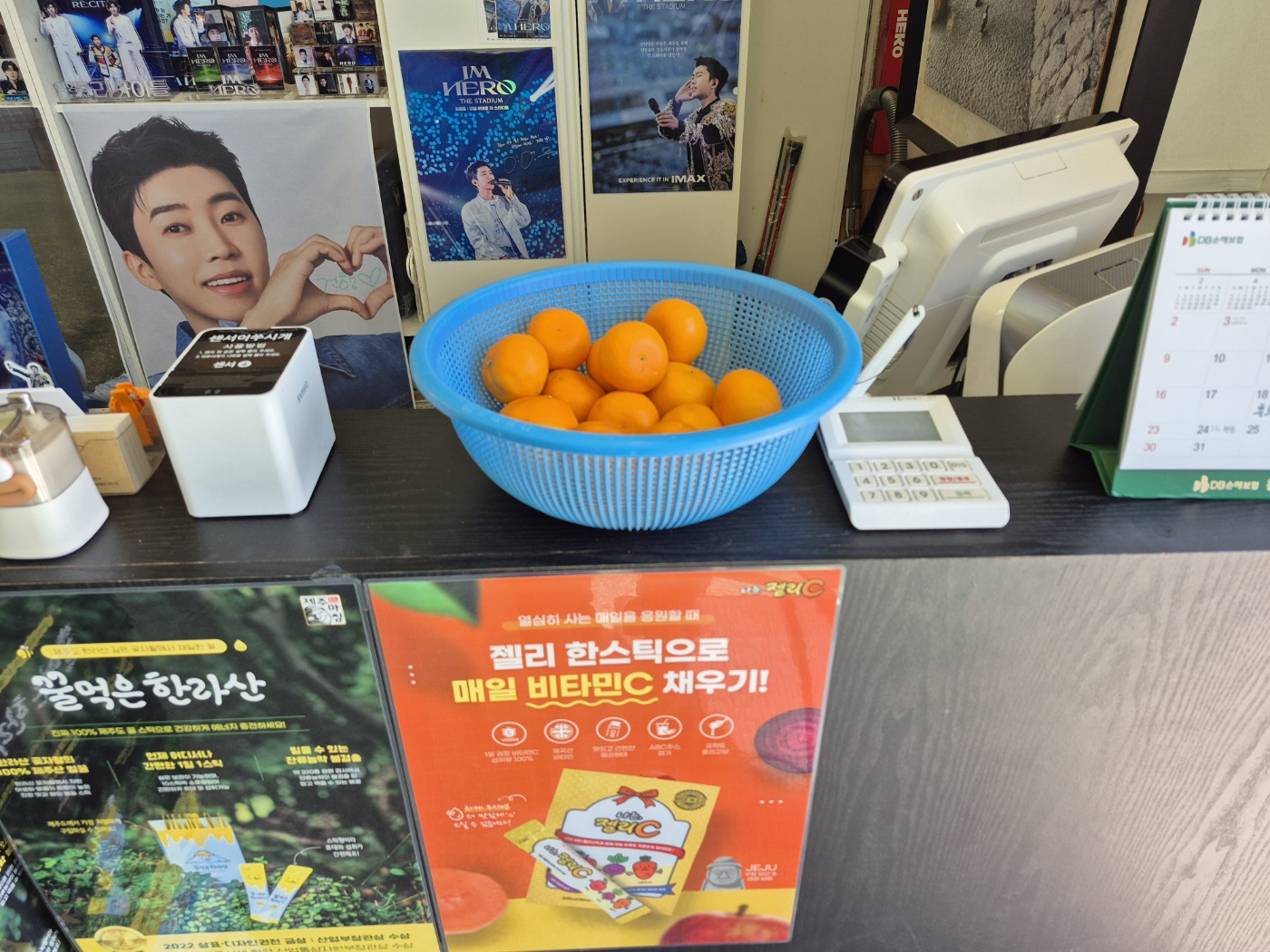 주어코지 국수창고 입구 카운터 위에는 바구니에 천혜향을 담아놓아서, 손님들이 편하게 먹을 수 있다.