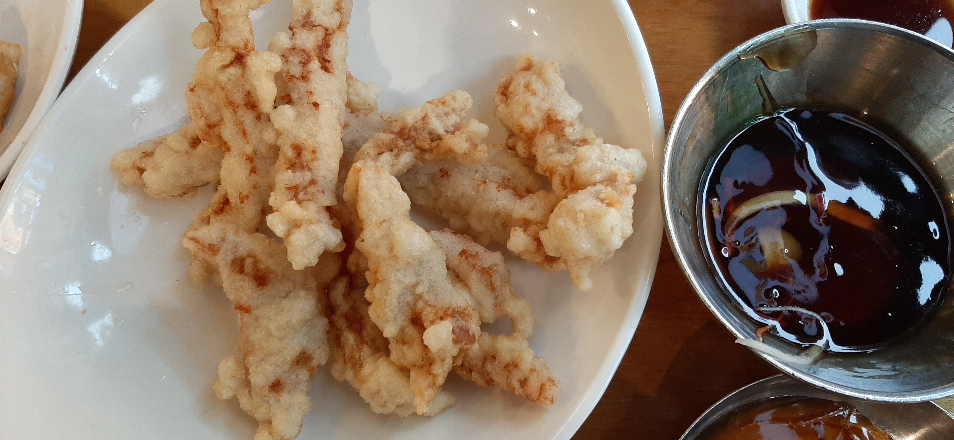 뽕사부 짬뽕 국물은 사골국물이 들어간 맛이고, 해장이 되는 맛이다. 탕수육은 겉바속촉으로 찍먹으로 먹어도 맛있고, 부먹으로 먹어도 맛있어서, 취향에 따라서 먹으면 된다. 탕수육과 군만두가 나와서 나는 찍먹으로 탕수육을 안주로 소주를 마신다.  잠시 후에 짬뽕이 나오고, 같이 간 지인도 짬뽕을 맛나게 먹으니 내가 기분이 좋다. 소주도 한 잔 따라서 건배를 하고 마신다. 뽕사부 군만두도 겉바속촉으로 맛있다.