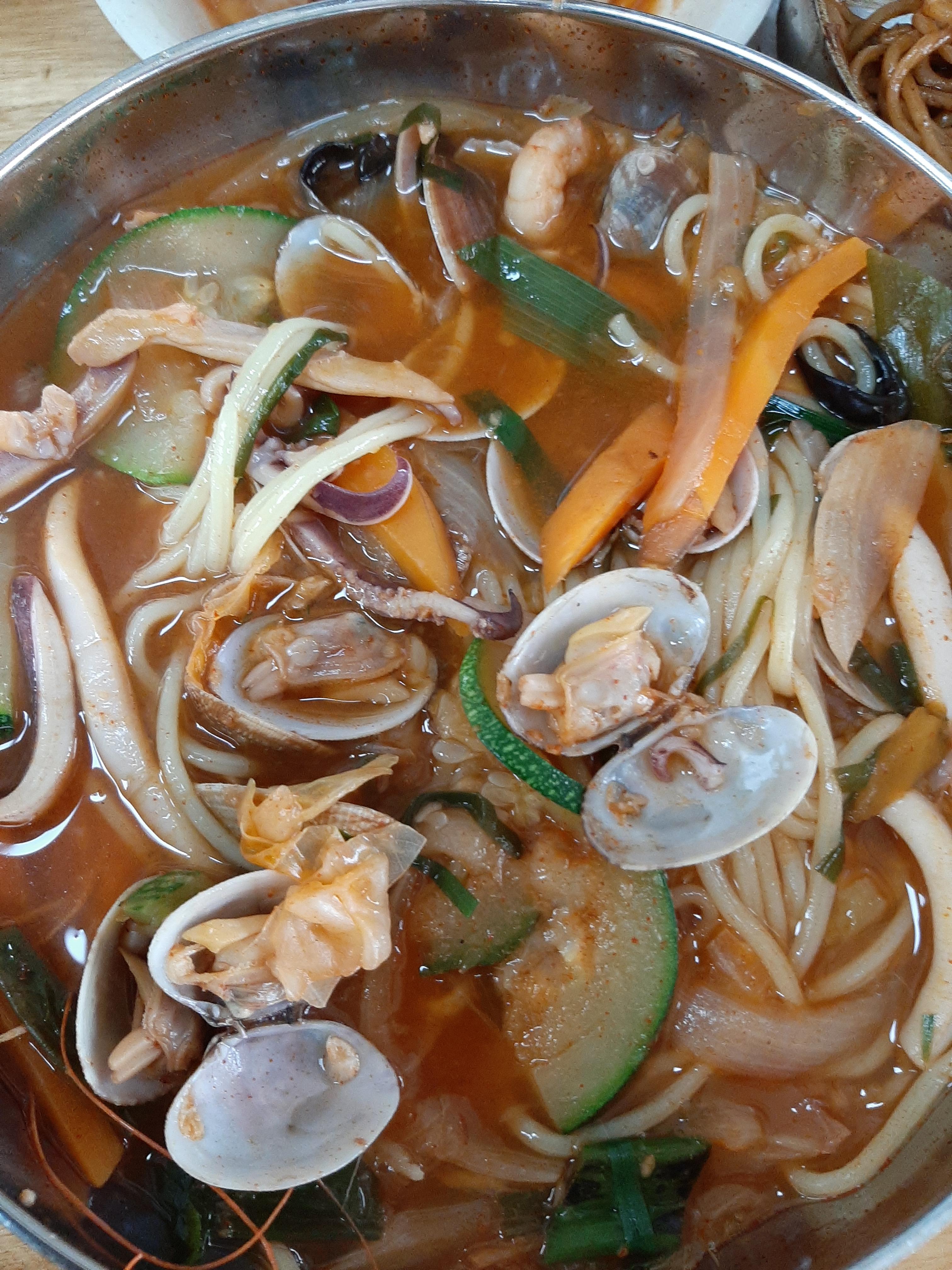 잠시 후에 매운 고추짬뽕이 나온다. 짬뽕도 양이 푸짐하고, 해산물도 많고, 내가 좋아하는 바지락도 많이 들어있다. 국물을 좋아하는 내가 국물을 기미를 하기 위하여 국물을 먼저 맛을 보고, 마니께 권한다. 이렇게 많은 사람들이 아까운 시간을 소비하며 줄을 서서 기다리는 이유가 있다.