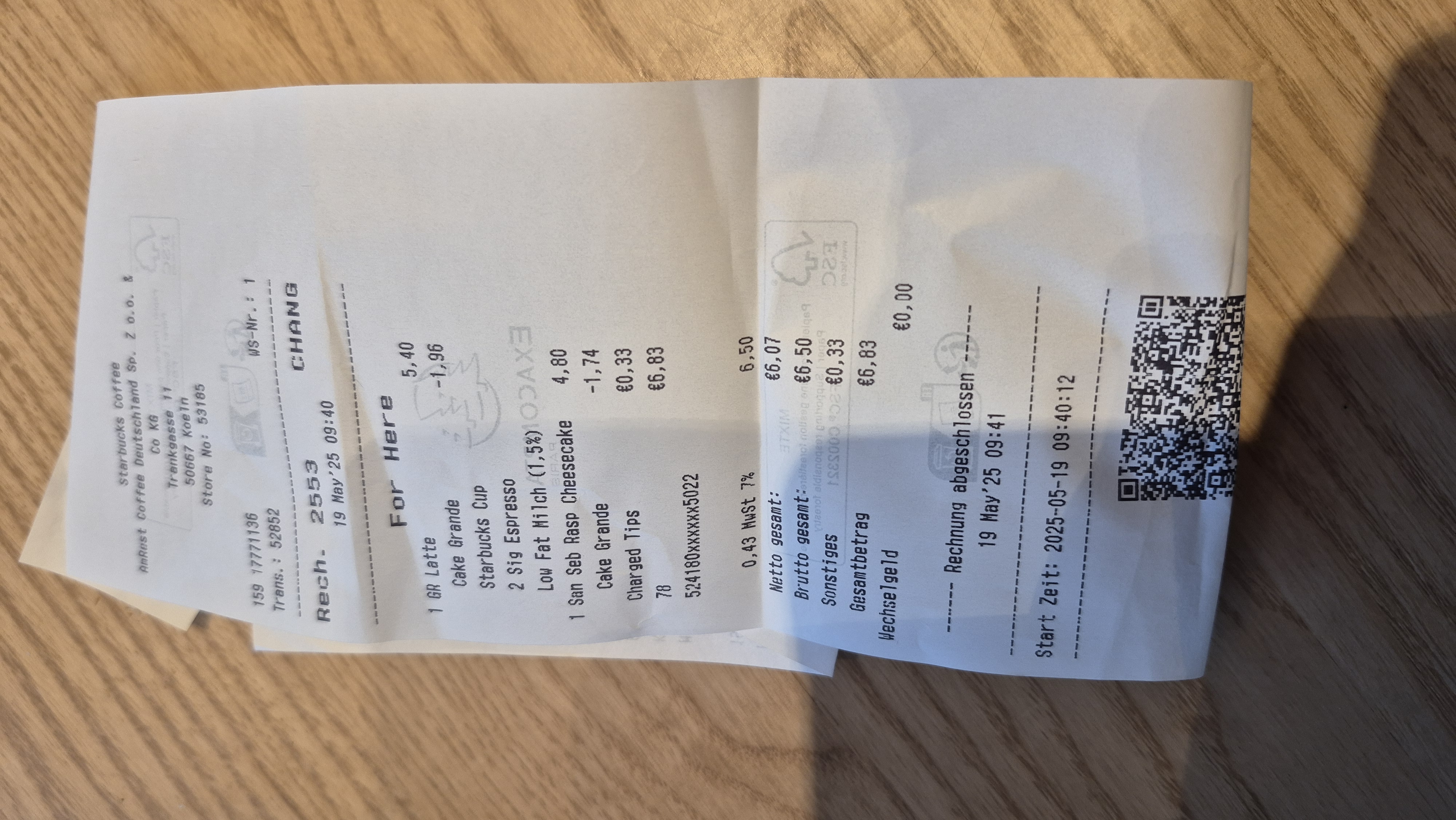 11시 11분에 함부르크 가는 기차를 예매했고, 킐른 중앙역에 있는 스타벅스에서 커피를 마시면서 기차 시간을 기다린다.