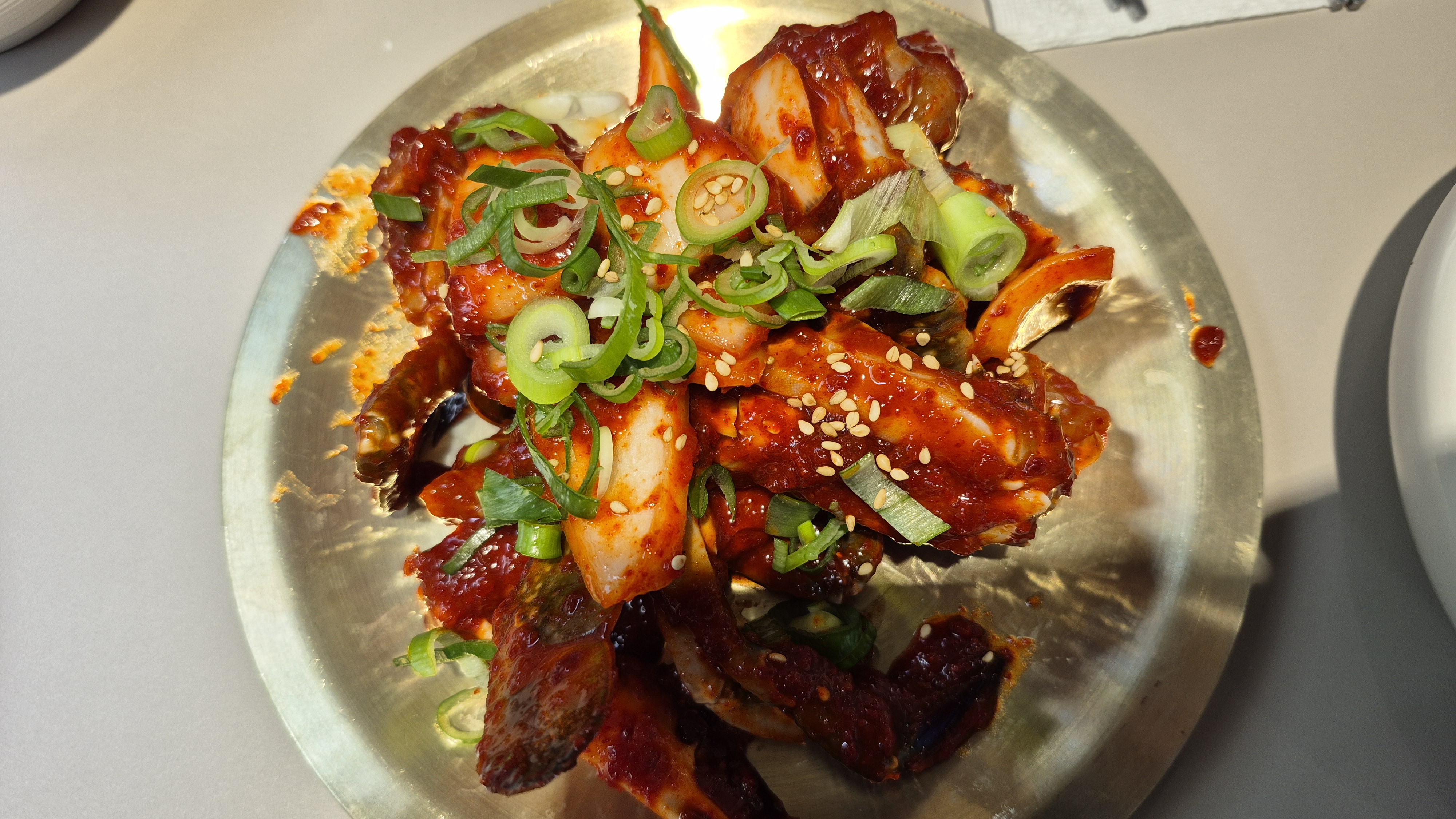 잠시 후 우리가 주문한 음식이 나오고, 11시에 아침을 먹은 나는 배가 불러서, 포장해서 가져갈 생각으로 술안주로 먹을 양만큼 앞접시에 조금씩 덜어서 먹는다.