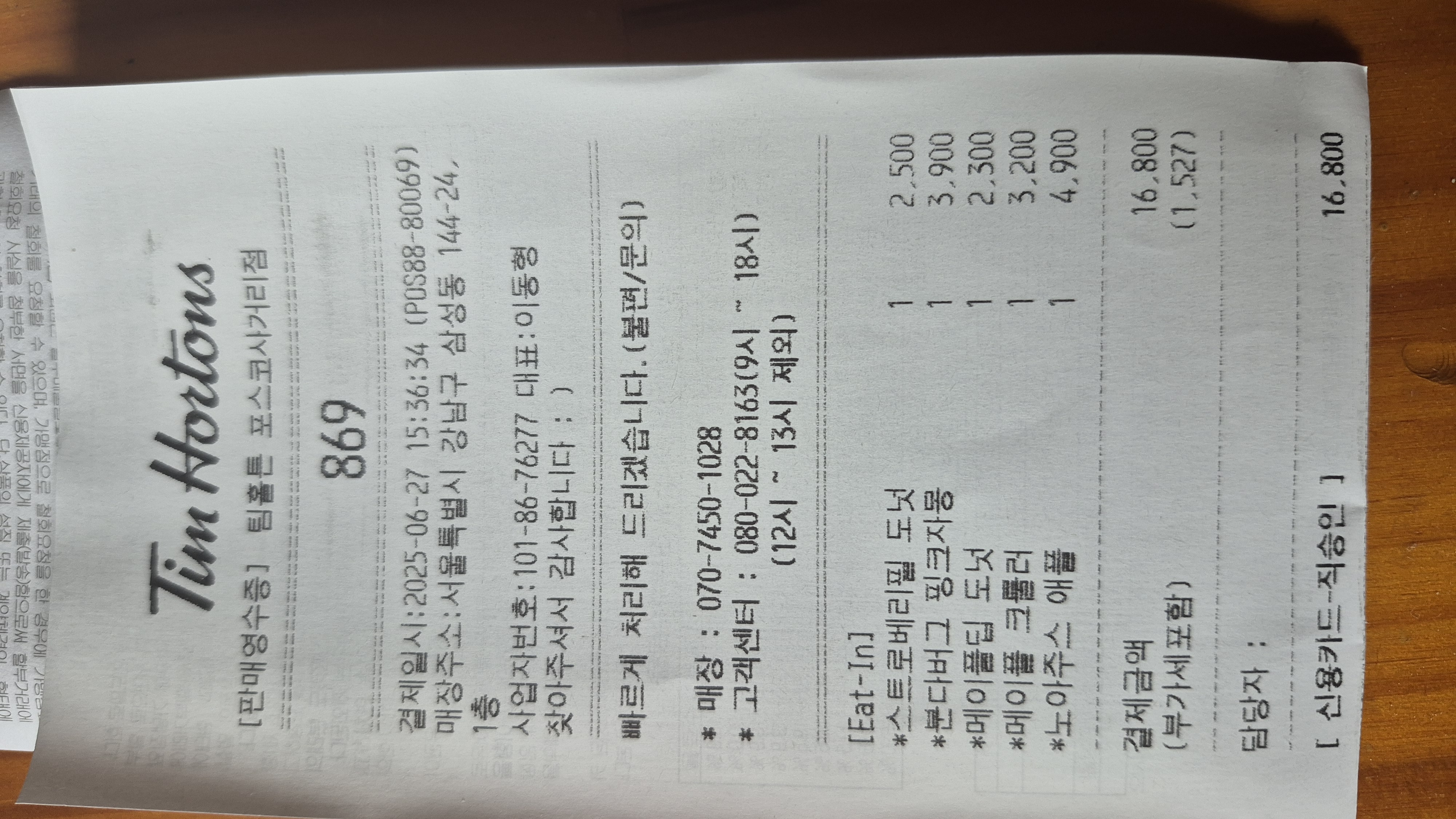 최근에 내가 운동하는 스포애니 테헤란로점 건물 1층에 팀홀튼이라는 캐나다 커피와 도넛을 파는 매장이 생겼다. 나와 사위는 노트북을 가지고 캐나다로 여행을 떠나고, 마님, 딸, 손주는 나중에 캐나다로 오기로 한다.