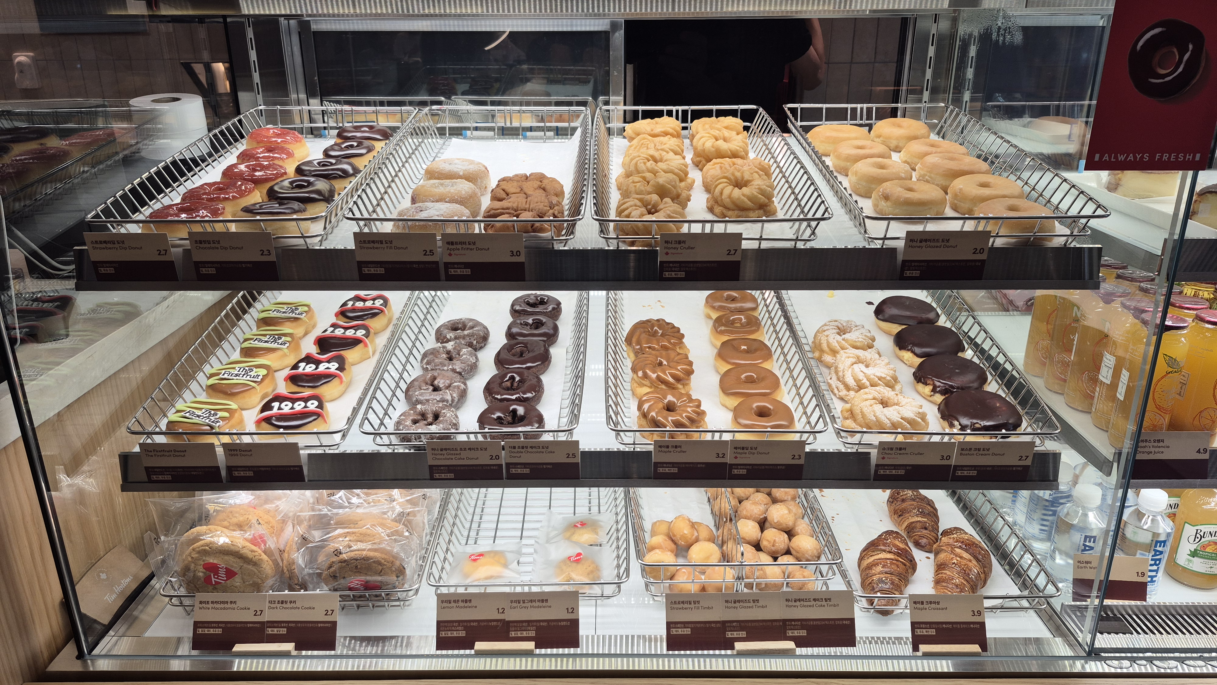 젊은 사람들이 계속 들어와서 음료와 도넛을 먹는다. 경기가 좋아져서 영업을 하는 소상공인들의 영업이 잘 되면 좋겠다.