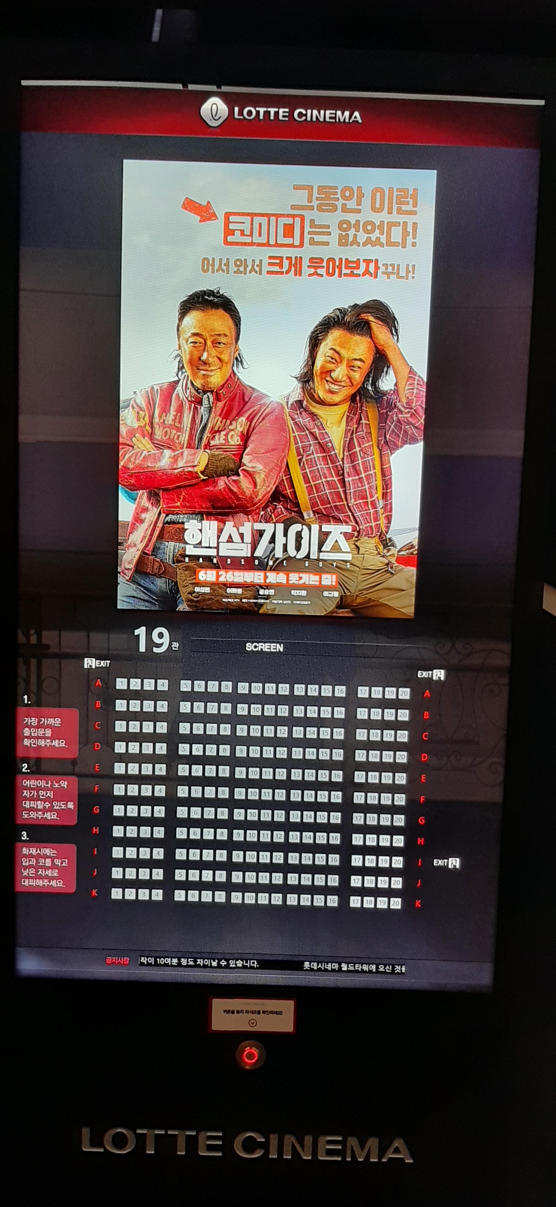 핸썸가이즈를 개봉한 지 보름이 지났는데도, 다양한 연령층의 관람객들이 영화관의 절반을 채웠다.