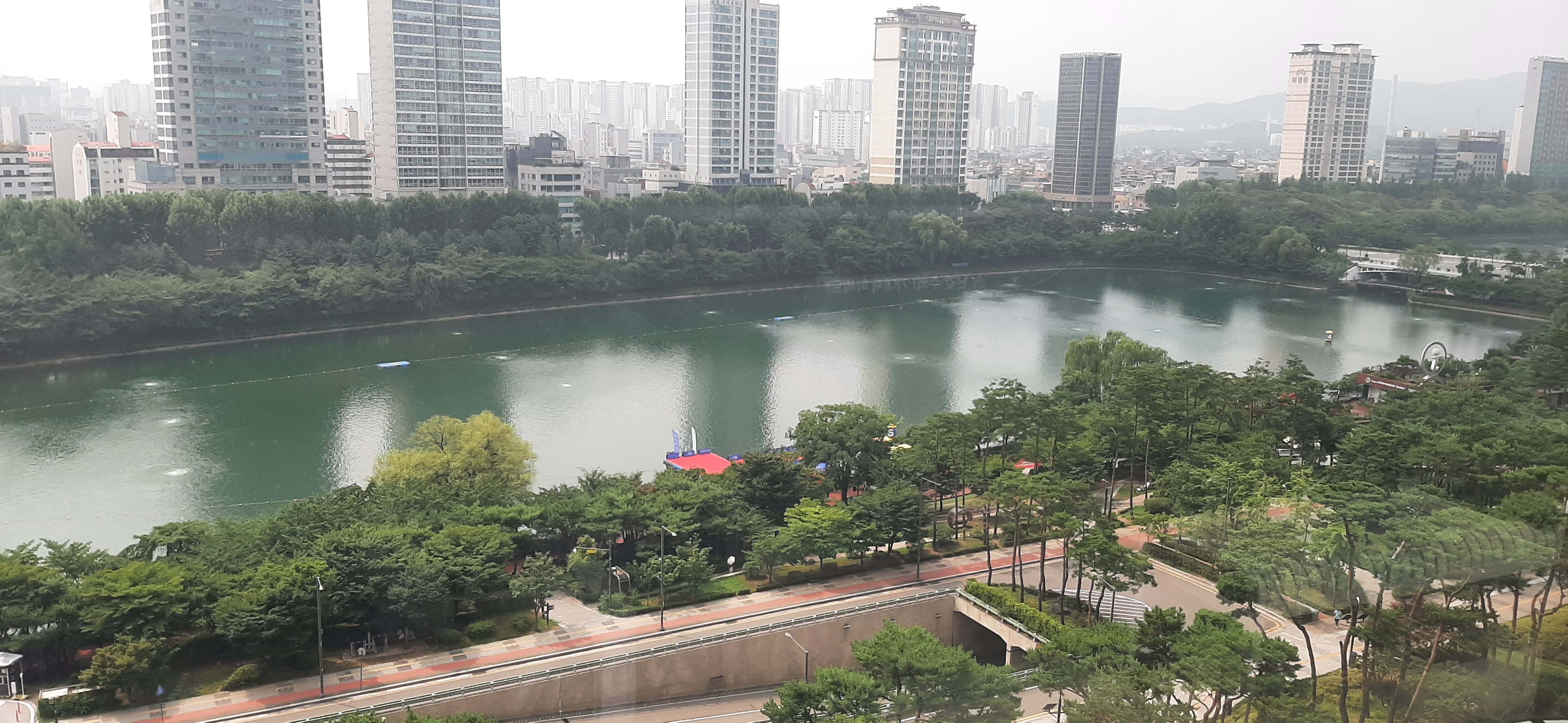 4월 초에 영화 댓글부대를 보려고 롯데시네마 잠실점에 갔을 때는 벚꽃이 화사하게 피었었는데 지금은 파란 잎이 나와서 더위를 달래주는 그늘을 만들어 준다. 석촌호수 주변에 벚꽃나무들도 파란 잎으로 변신했다.