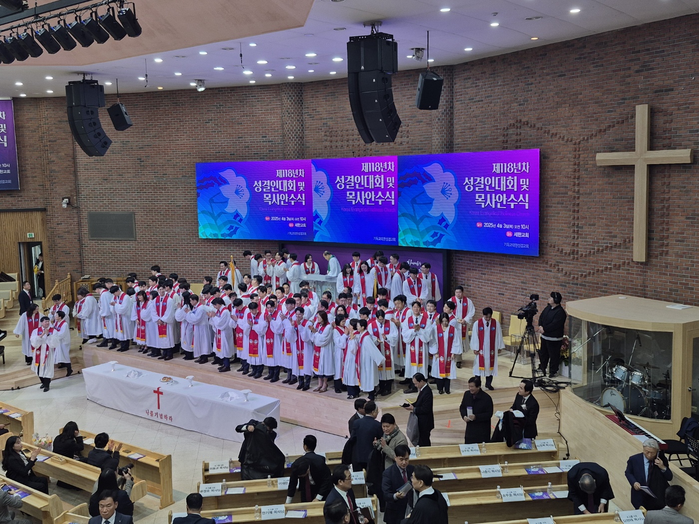 제118년 차 성결인대회 및 목사안수식은 기독교대한성결교회 총회장 류승동 목사님의 인사로 시작하고, 오늘 목사 안수식에는 100명의 목사님들께서 목사 안수를 받는다.