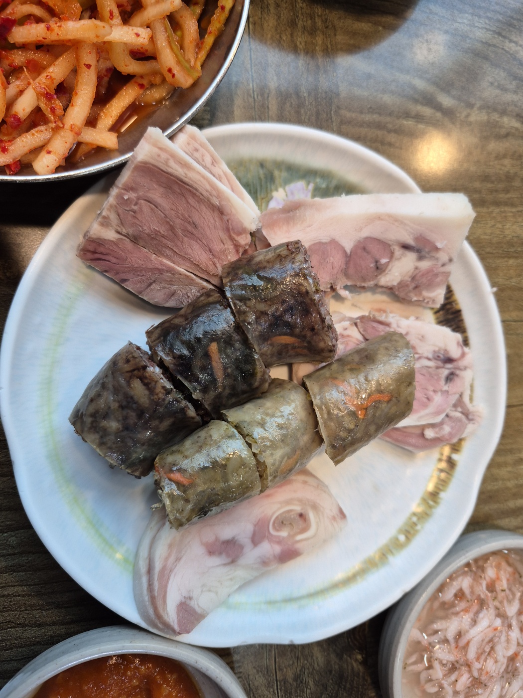 24시 본가 신의주 찹쌀순대집의 무생채와 섞박지가 아주 맛있다.
