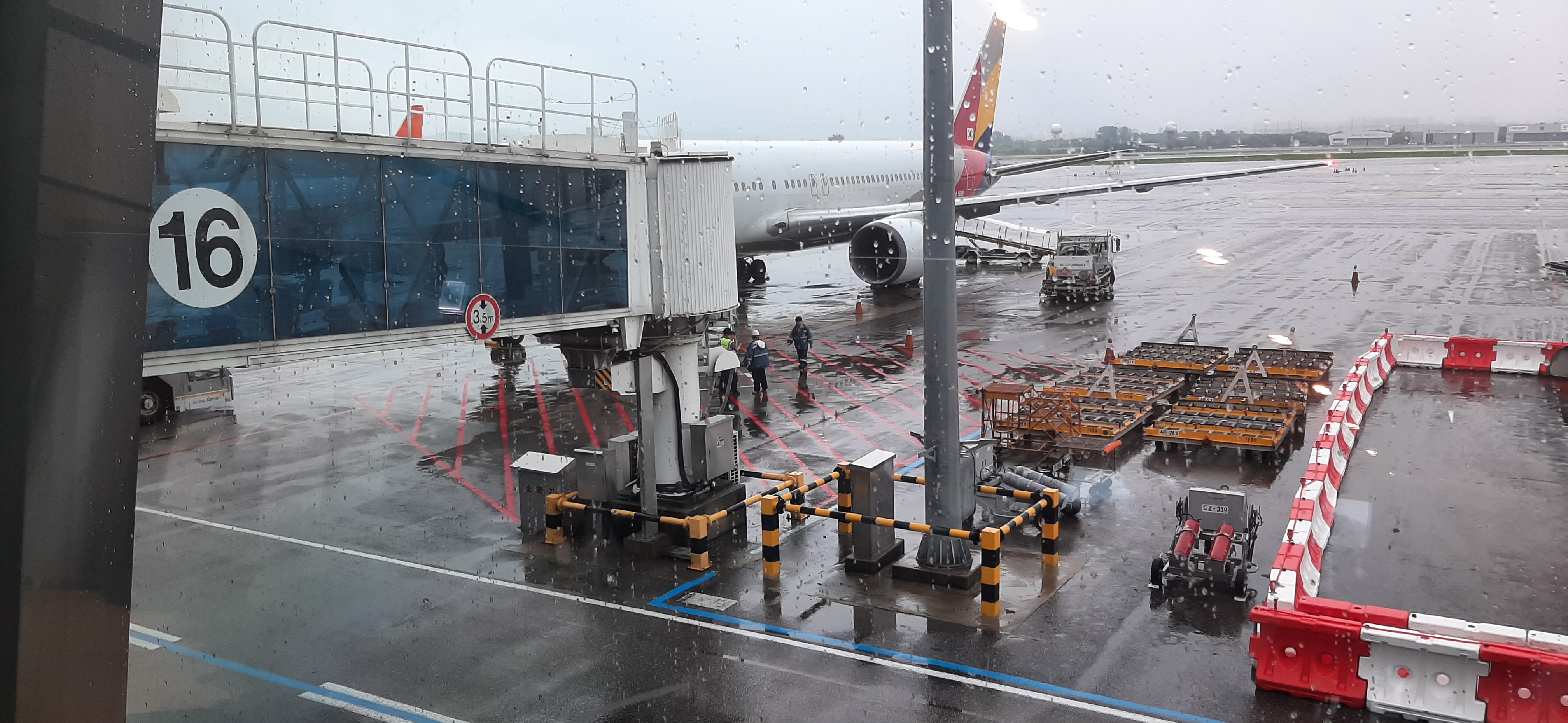오후 1시 20분에 집을 나와 9호선 전철 봉은사역에서 김포공항 행 급행열차를 타고, 김포공항에 도착하여 출국 수속을 마치고 16번 게이트로 가니 3시 40분에 출발한다는 멘트가 나온다. 1시간 20분을 기다려야 한다.